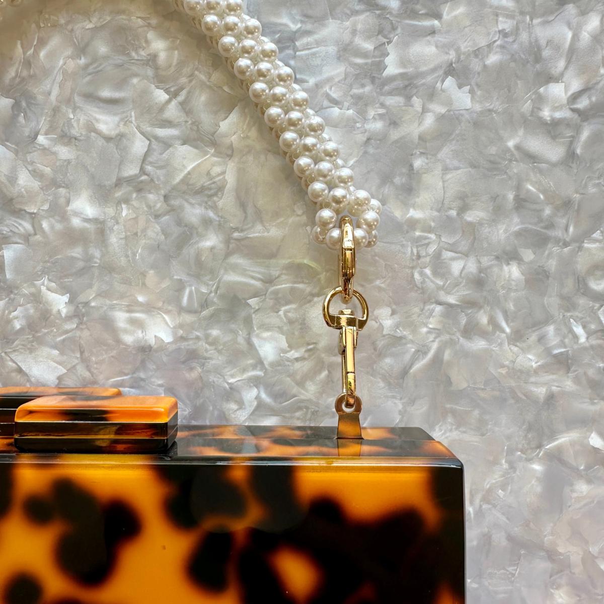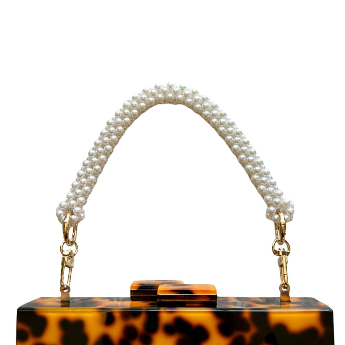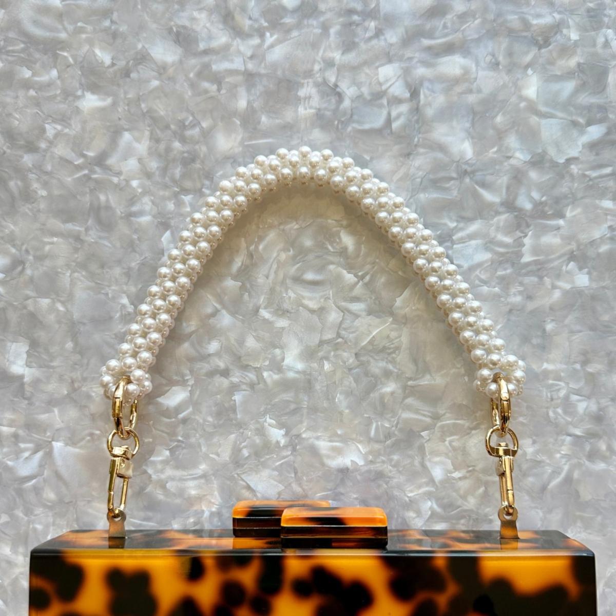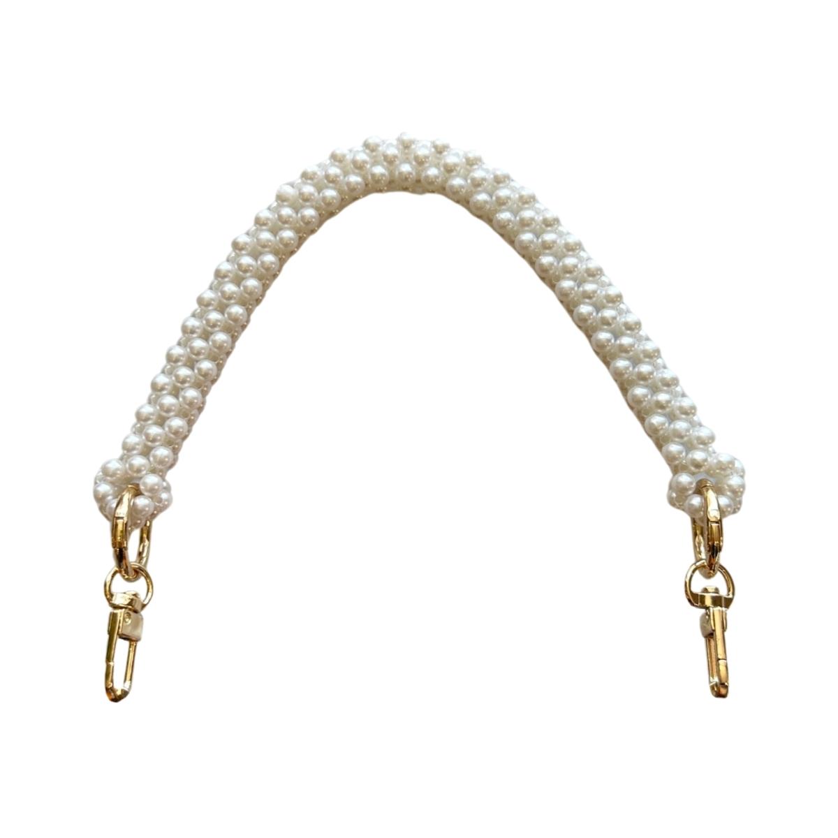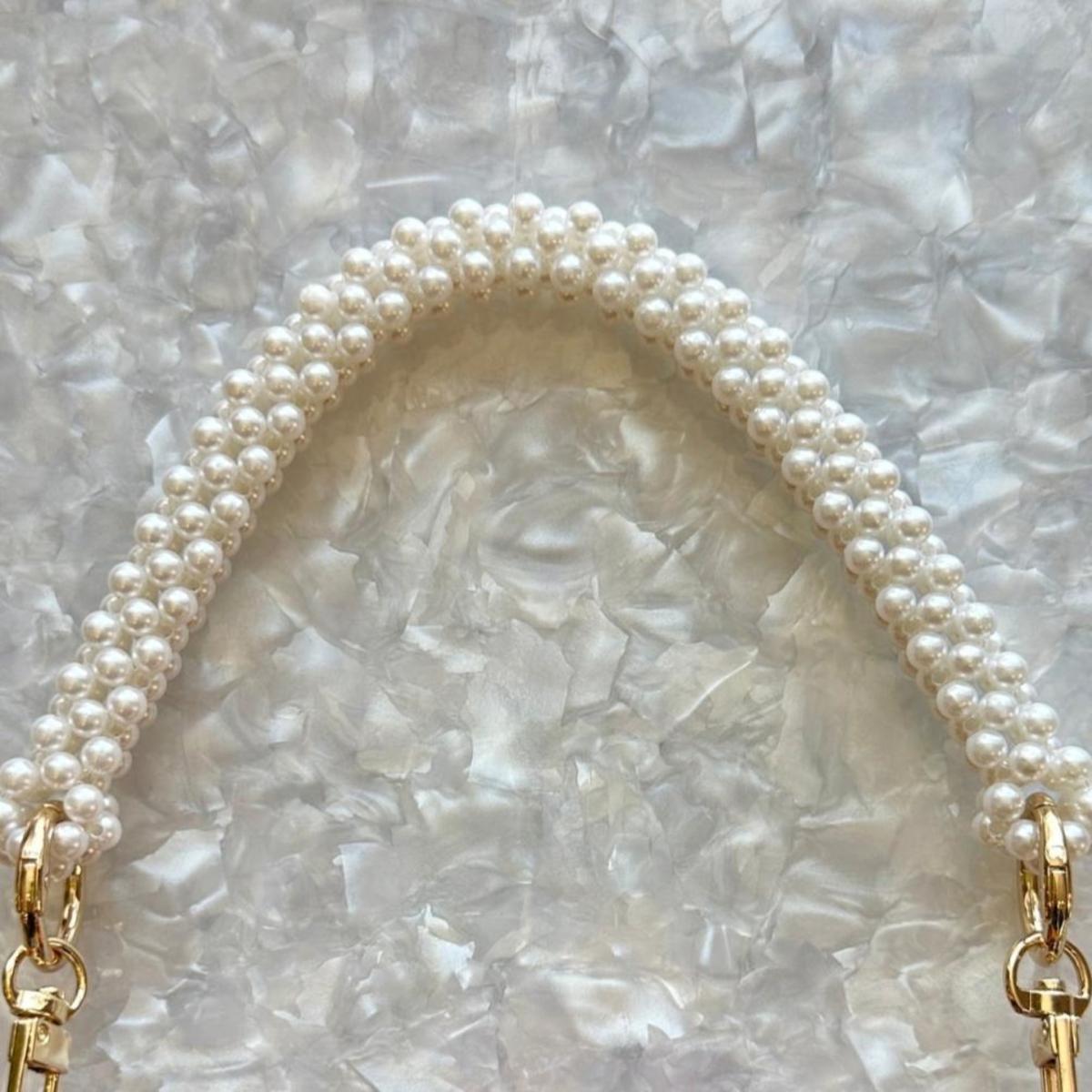 Your handbag game is about to step up a notch! Mix and match any one of our purse handles with your favorite party box clutch or bring new life to the bags you already own and love. All bags and straps sold separately so you can customize to your liking. Features mini faux pearl acrylic beads hand-strung into a 5/8" thick handle with gold toned lobster clasps. This acrylic purse strap was specially curated for Closet Rehab. Please check out the rest of our collection of mix and match purse straps and crossbody straps along with our acrylic purses.