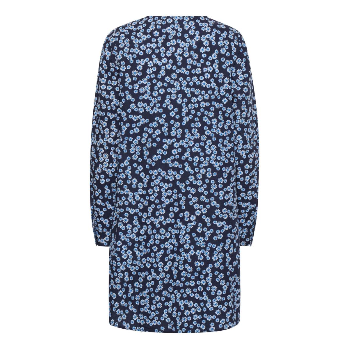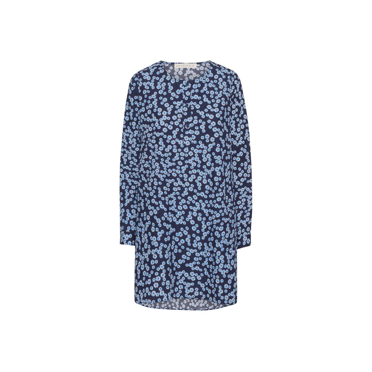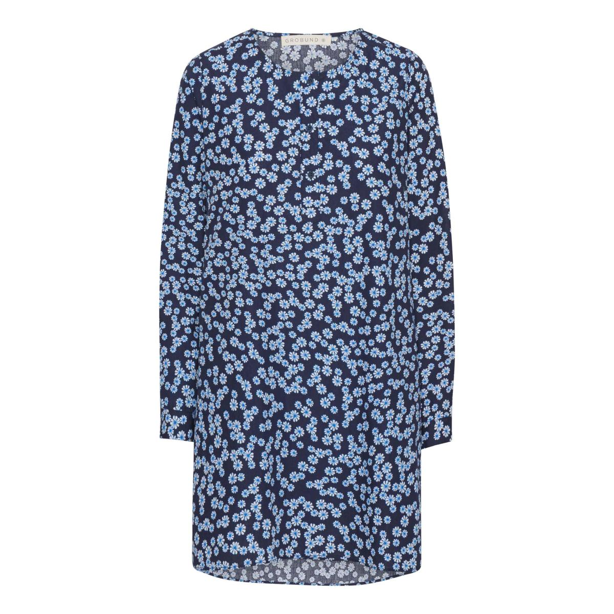 Grobund's beautiful tunic dress or oversized blouse with a loose fit. The tunic is soft and comfortable, yet feminine and elegant. The blouse is sewn in 100% organic cotton. The beautiful floral print adds a nice play of colors and life to the design. Note the detail of the buttons at the front, which makes it possible to loosen the collar slightly or close the tunic completely and, for example, put it together with a scarf. The loose fit cut makes the tunic perfect with trousers or leggings. The Johanne tunic is of course organic and Gots-certified.