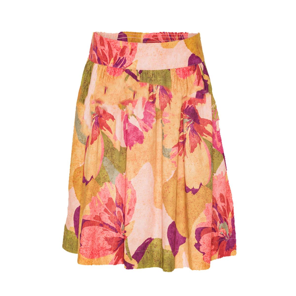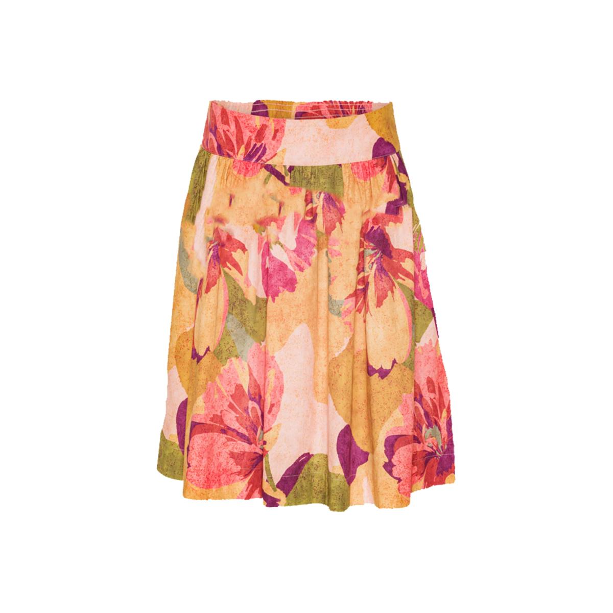 This skirt can be worn for any occasion, depending on what you pair it with. The skirt is sewn in organic woven cotton poplin, which has a light and crispy feel and gives a really nice fall in the fabric and an elegant look to the skirt. The beautiful pattern on the skirt is called big flower. The colors are incredibly beautiful and go really well with many of our popular Karen tees. The Svala skirt is very full and fits beautifully whether you place it at the hip or waist. You can position the skirt however you think it looks best. It has a smooth front and elastic on the back waist. The Svala skirt has deep side pockets, which is both comfortable and practical to wear. The skirt is of course organic and Gots-certified.