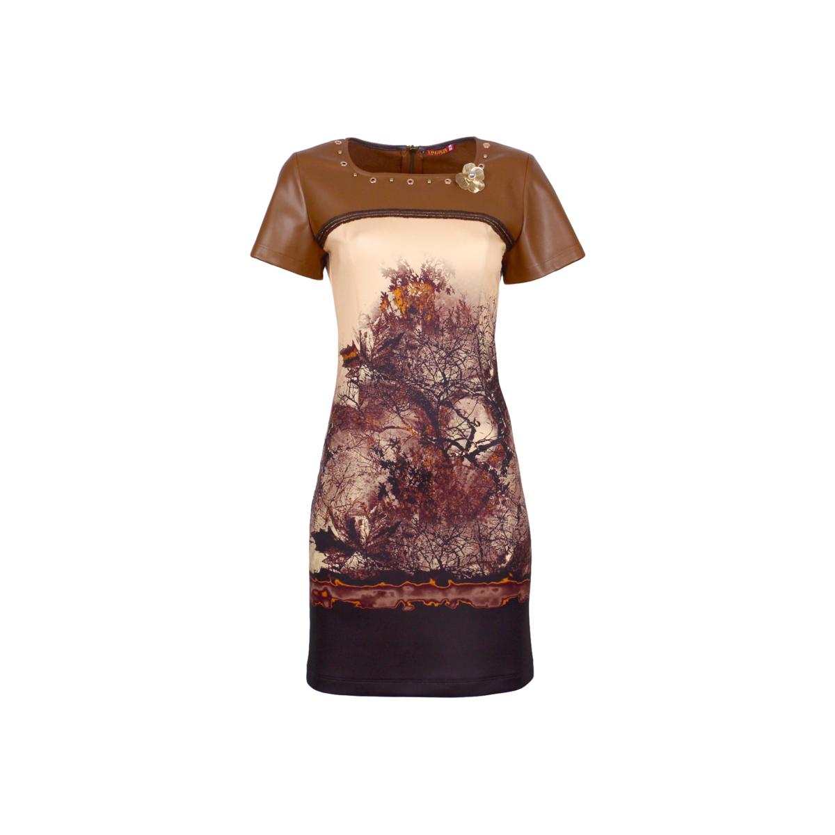 Our All-Over Graphic Print Short Sleeve Dress combines bold style with modern materials. Made from soft vegan leather and recycled polyester for a better world, the A-line mini dress features a striking graphic print pattern and a structured silhouette. Metal eyelet detailing adds a sharp edge, perfectly balancing the design for a standout look.