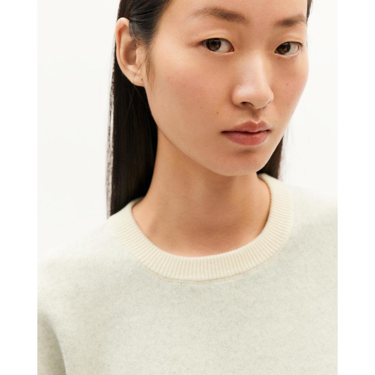 Women's Neutrals Ecru Merino Wool Flowers Philis Sweater | Medium | Thinking Mu
