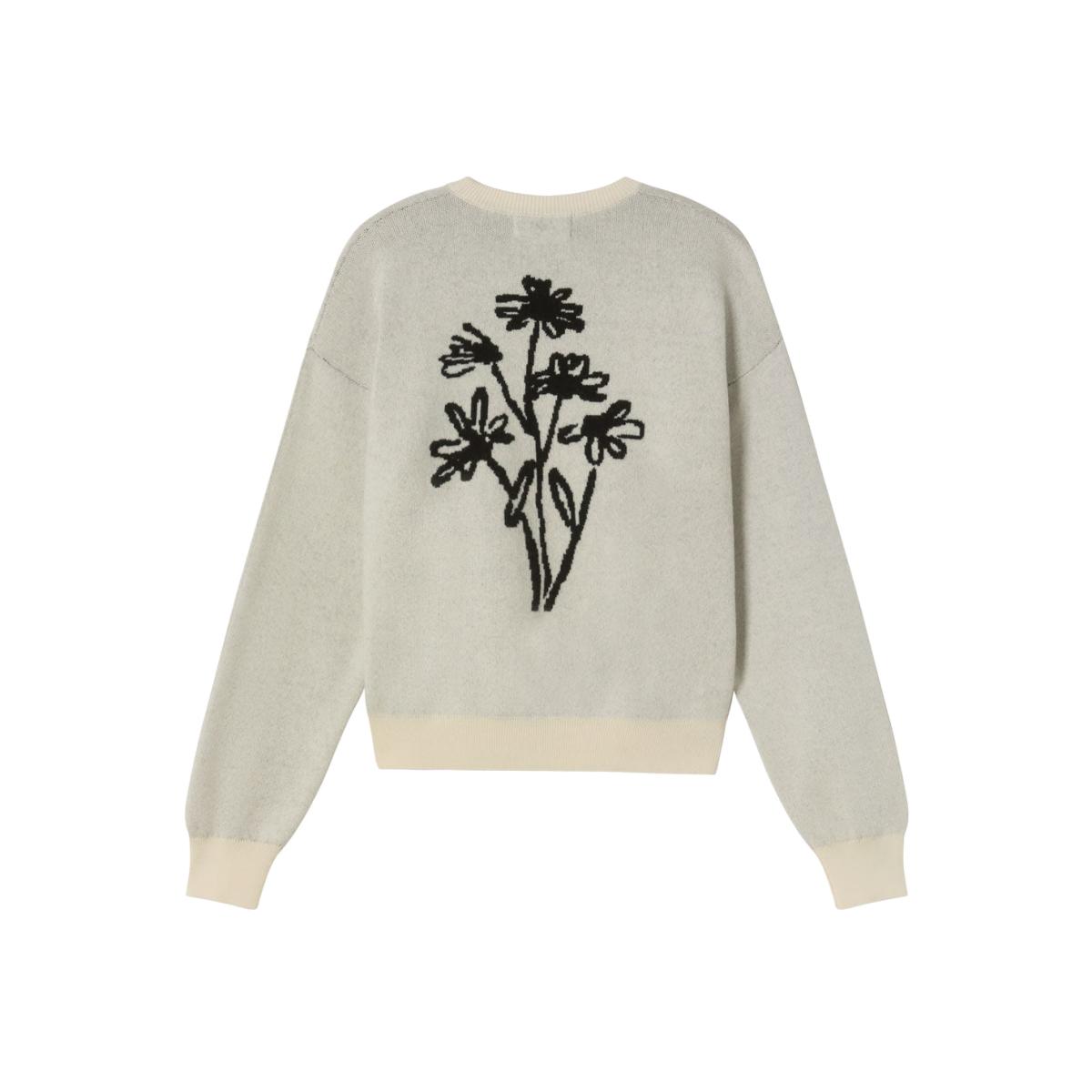 Ecru merino wool flowers Philis sweater. Round neck , Long sleeves , Regular fit , Fabric details: Intarsia, Garment length: short, Made In (fabric and dyeing): Italy, (garment): Spain. Measurements in size S: 56 cm total length, 54 cm back width and 50 cm sleeve length.