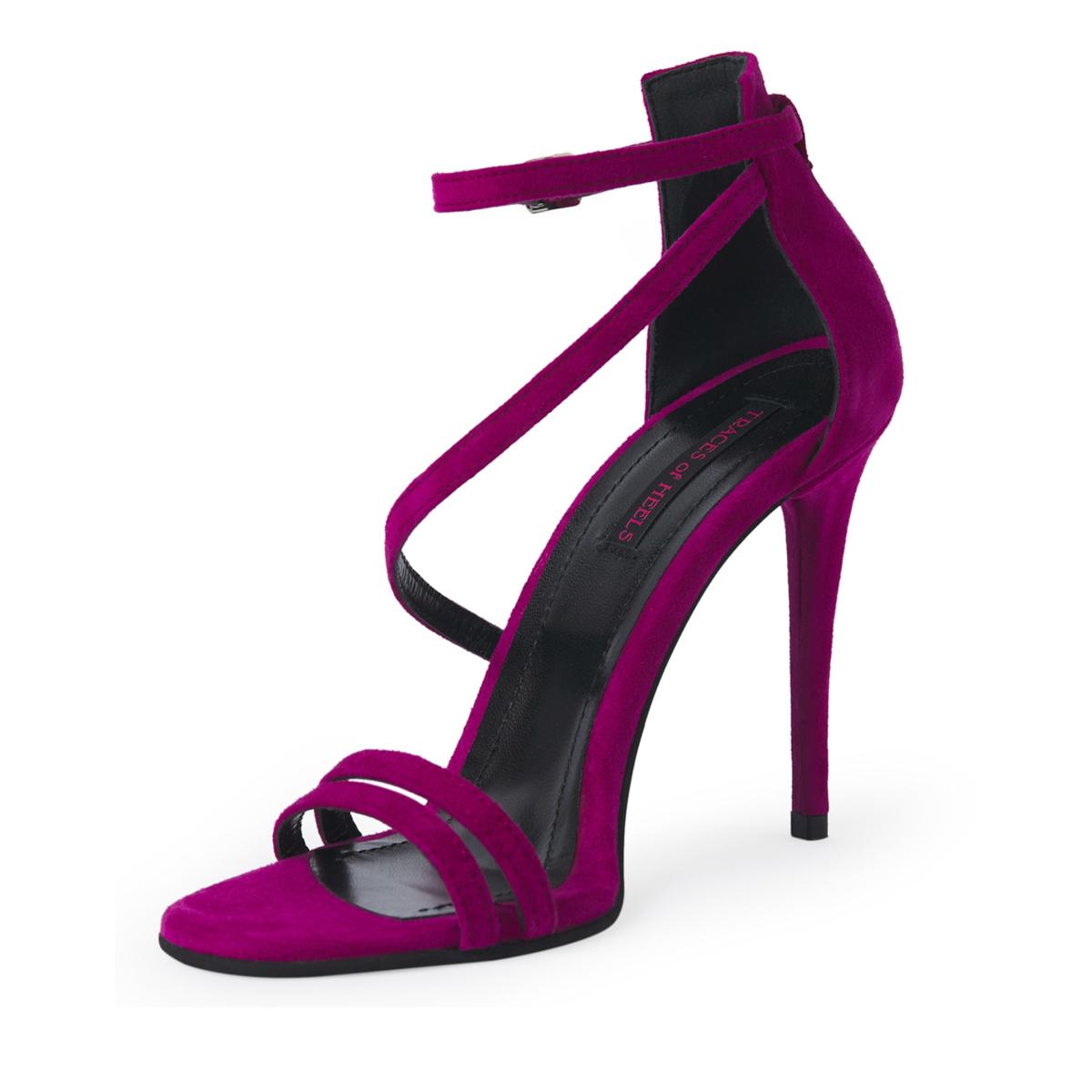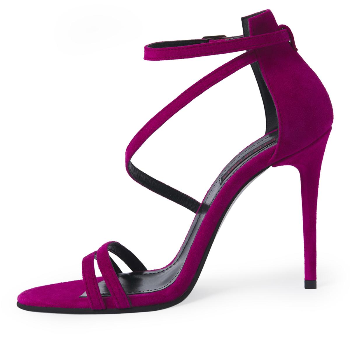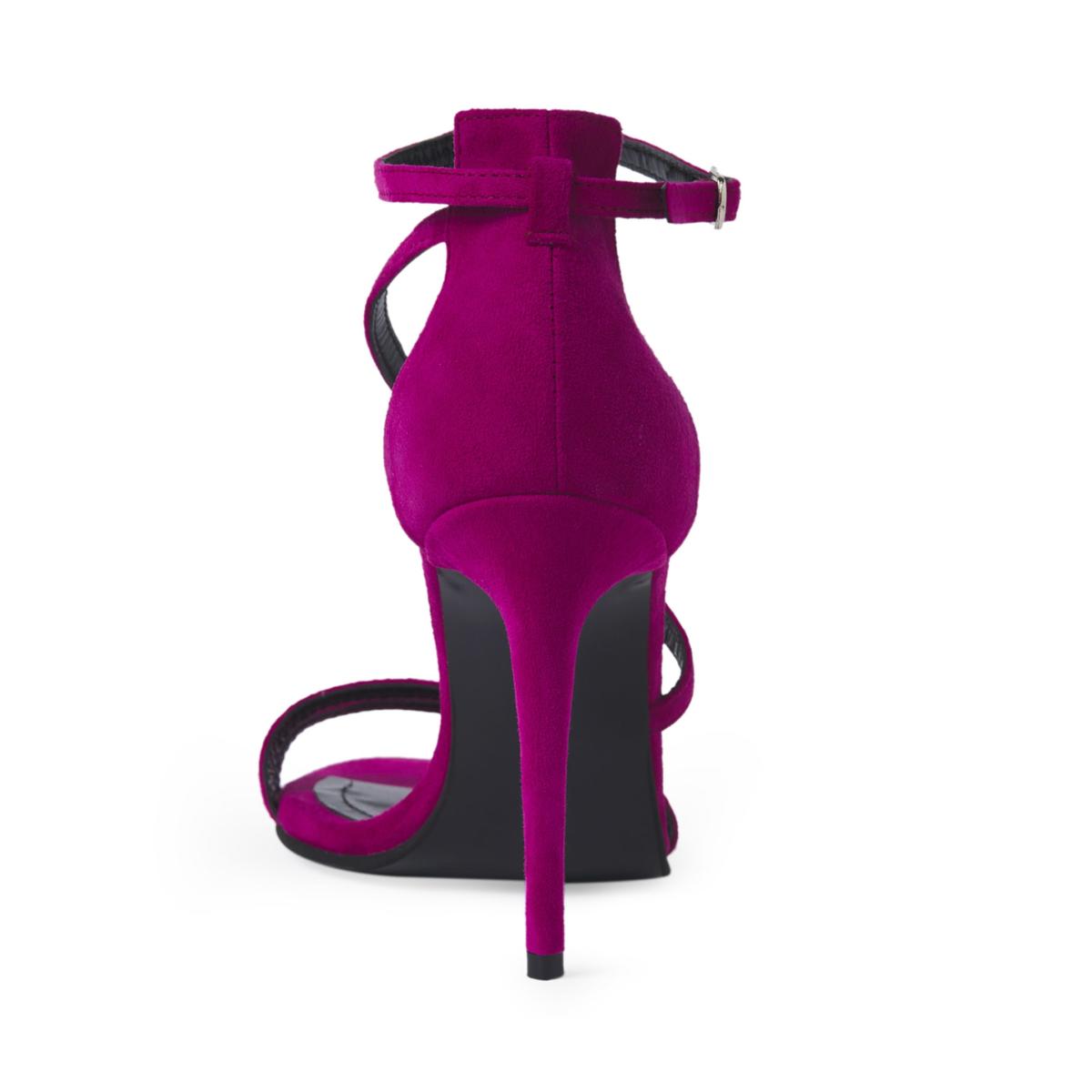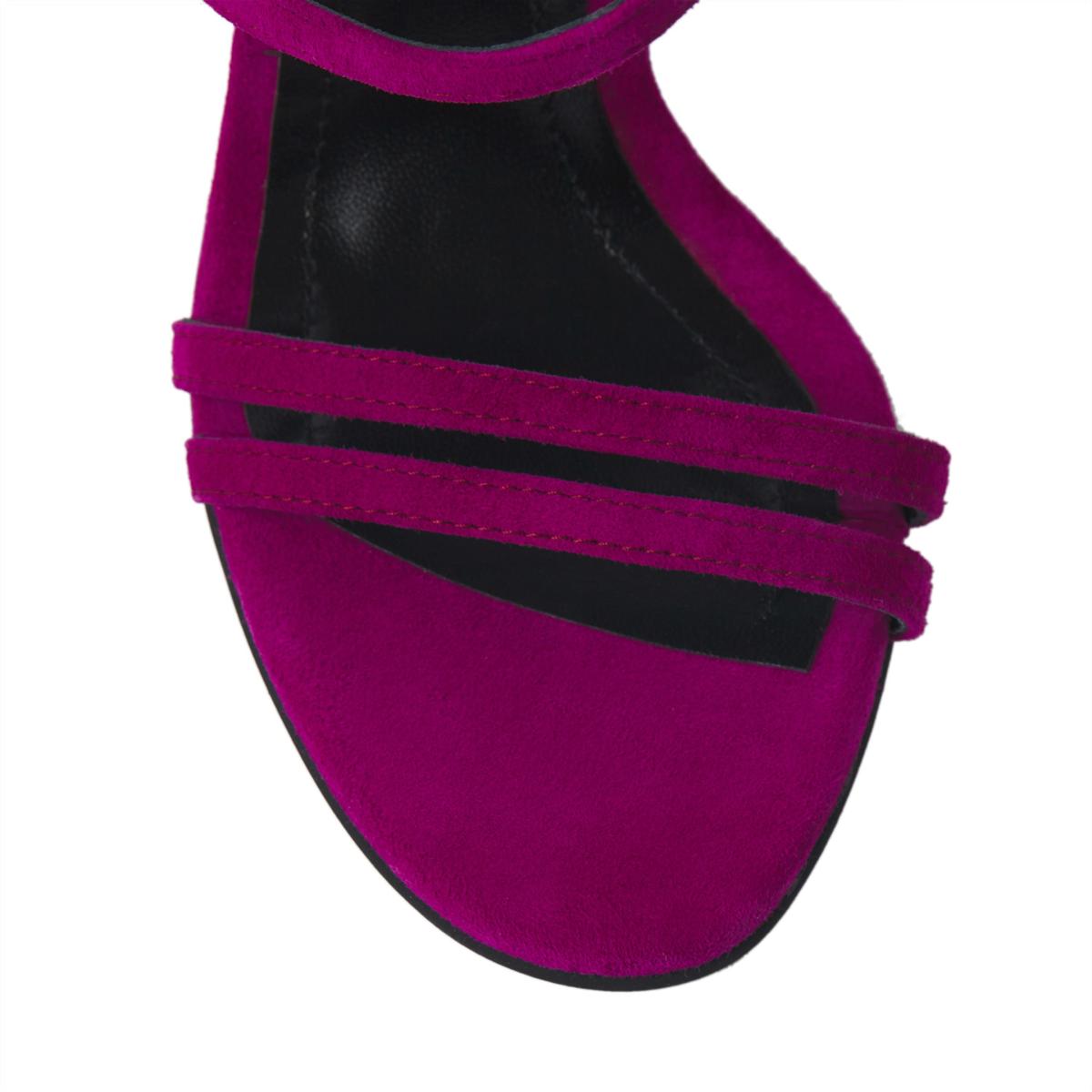 A pair of sandals worthy of the red carpet, sophisticated and elegant in their very simplicity. The closed back and delicate straps that wrap around the ankle give these sandals a sexy touch that flatters the foot. Made from high-quality genuine suede in a Fuchsia color, the Mirror Mirror On The Wall model will make you feel “...the fairest one of all.” These sophisticated sandals are perfect for any elegant occasion, from black-tie events and weddings to cocktail parties, fashion shows, dinners at luxury restaurants, or special events, adding a refined touch and an extra dose of elegance to any outfit. The heel height measures 100mm.