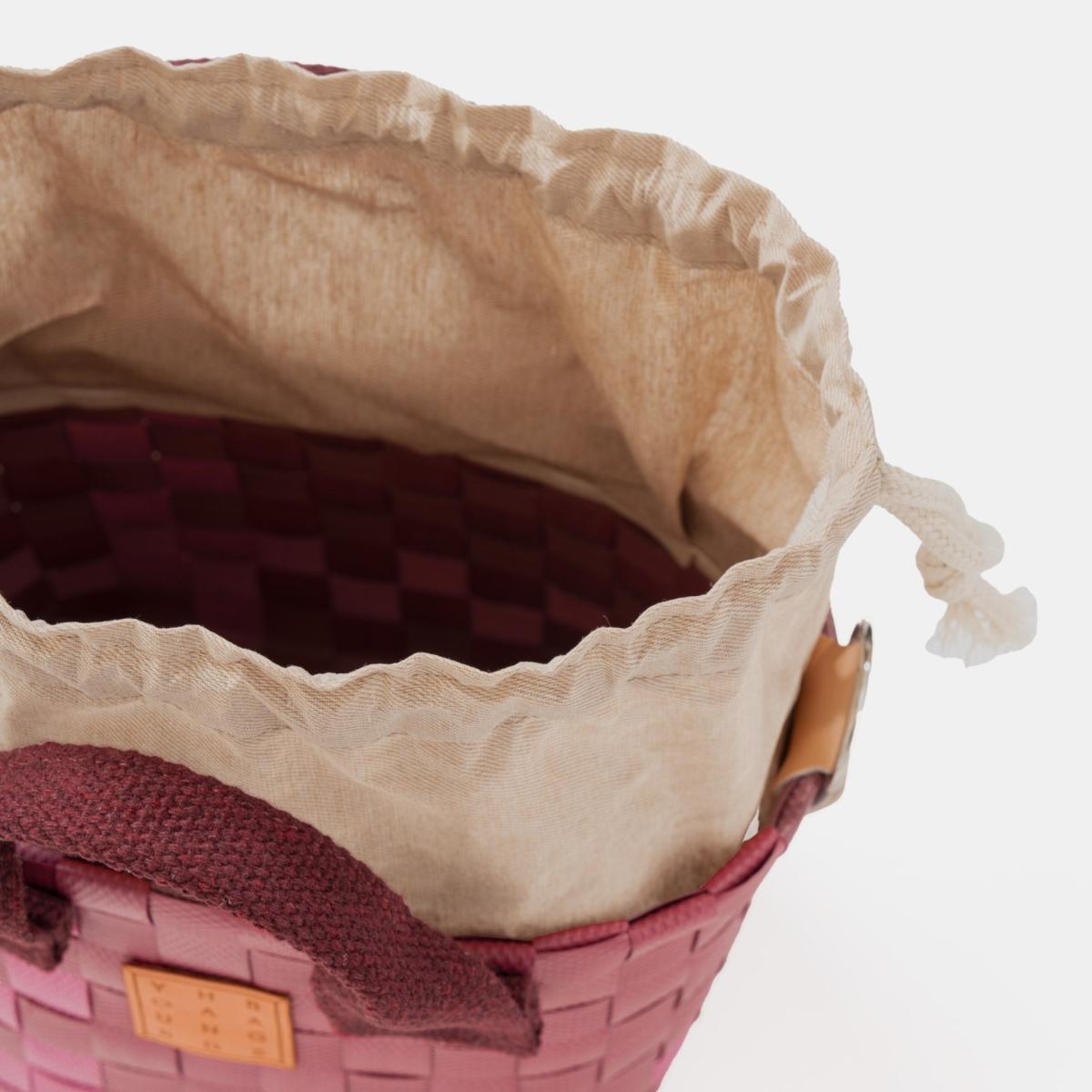 Durable and lightweight basket bag hand-knitted from recycled plastic! It offers safe use and is easy to clean with its cotton blend inner lining. It is ready to become your favorite piece thanks to its useful inner pocket detail and adjustable cotton column straps! You can do nature a favor by choosing this bag produced with environmental awareness!