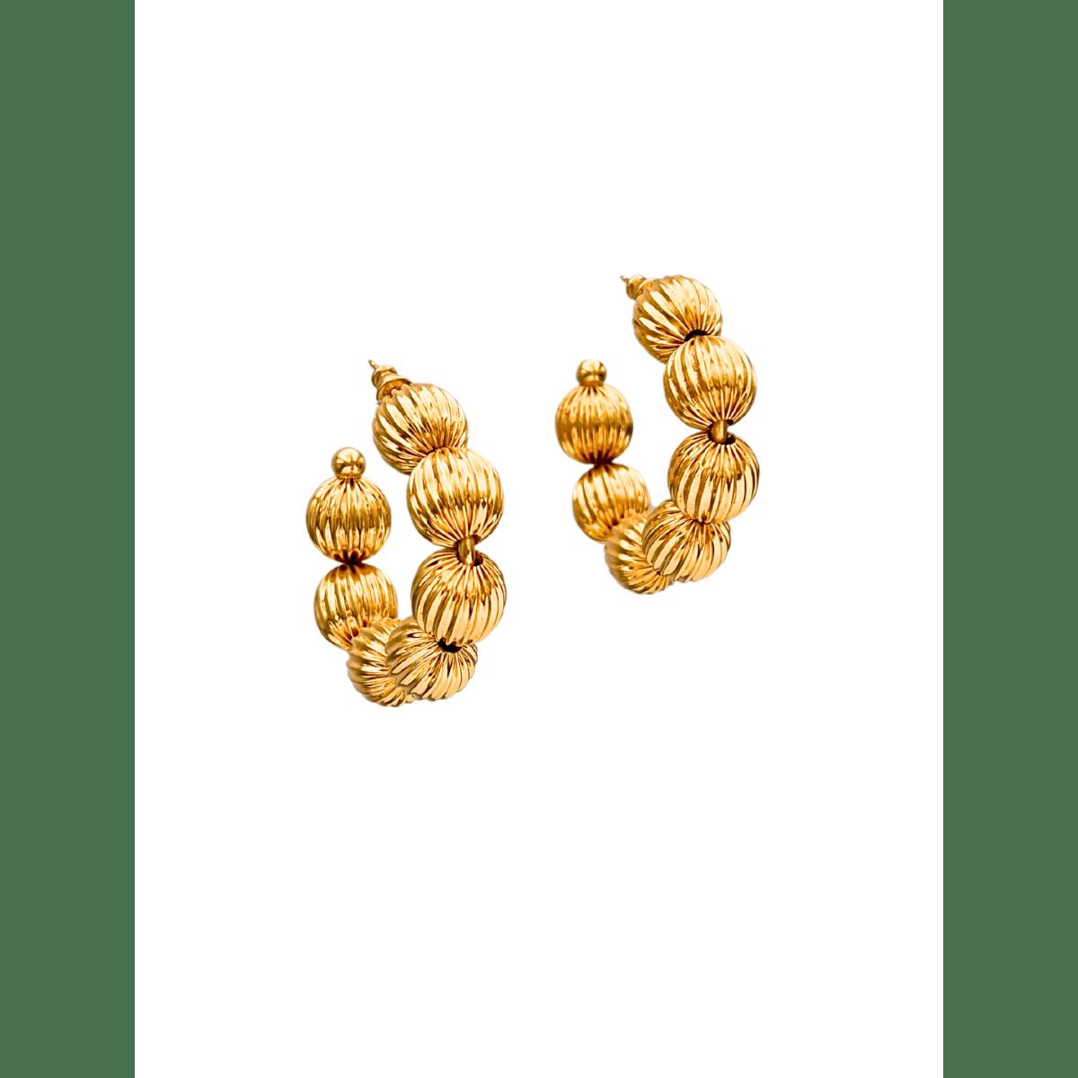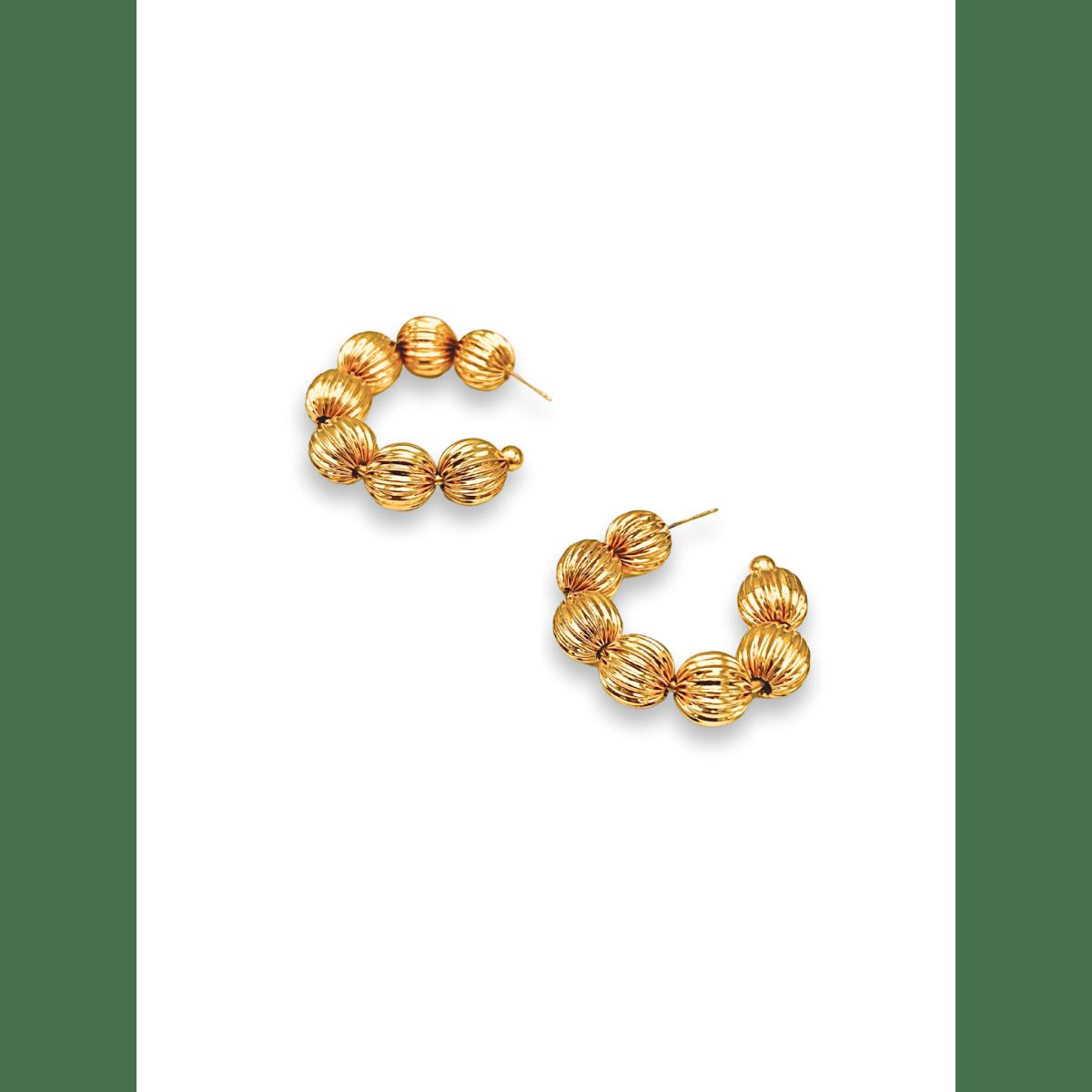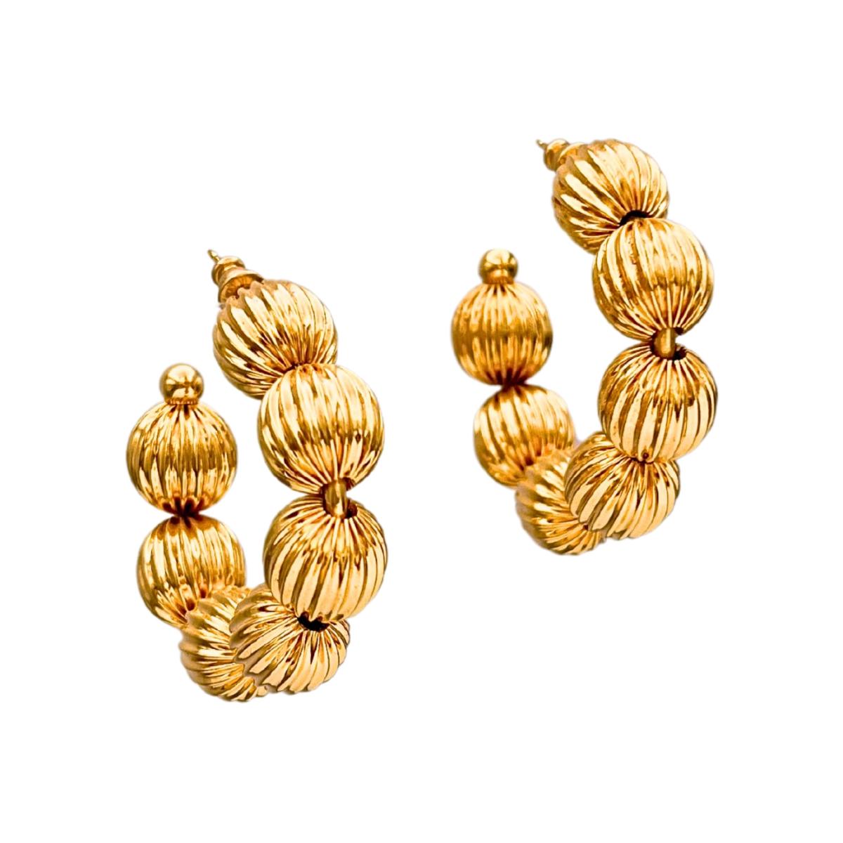 Get ready to add some flair to your jewelry game with these Small Gold Lantern Hoop Earrings! Adorned with lusty 18k gold plated lantern beads, these featherweight hoops will give you a 1.5" drop or diameter and a playful, rolling effect on your ears. At only 9g each, they won't weigh you down - just elevate your style!
