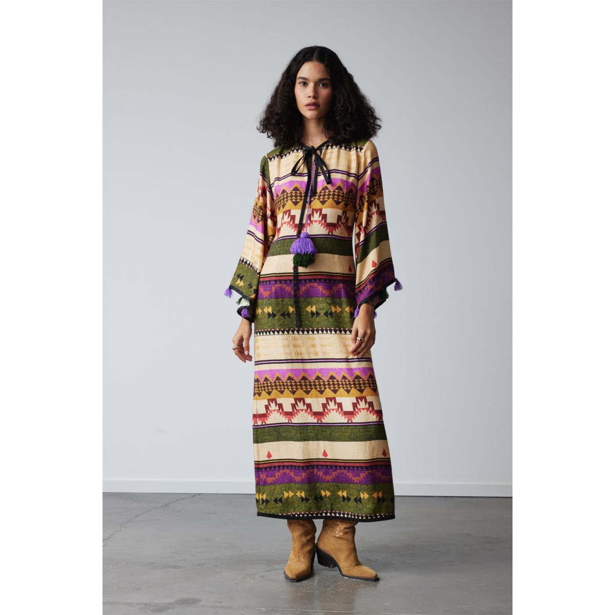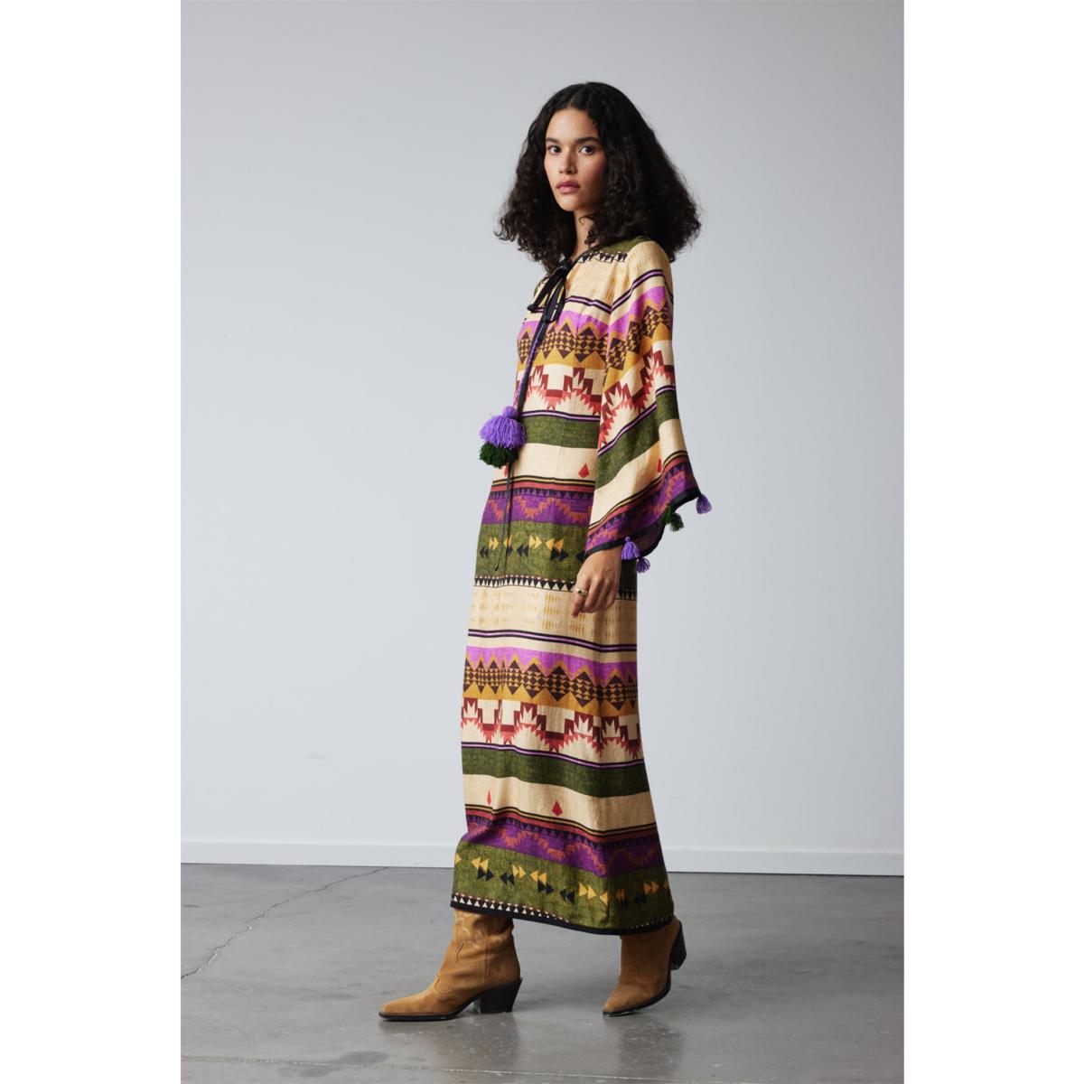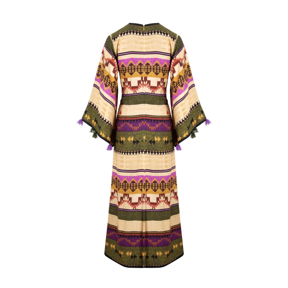 Violet - Rugs Patterned V-Neck Slit Maxi Dress with Collar and Armhole Accessories Product ID: E24W221006 . Color:Multicolor Mannequin Dimensions; Model S on the mannequin. Height: 179 Chest: 80 Waist: 61 Hips: 89 Made in Turkey with 85% Viscose 15% Acrylic Woven Fabric.