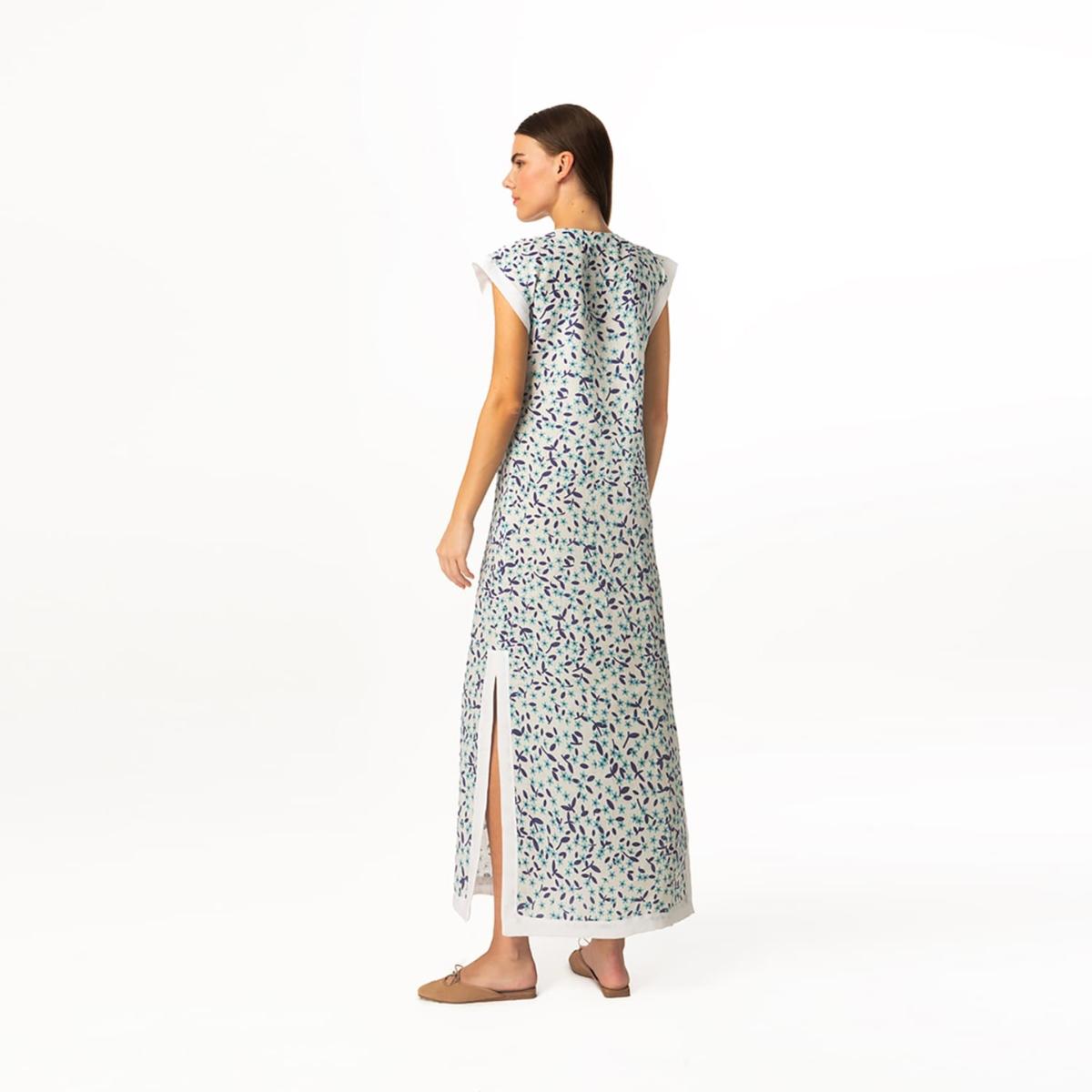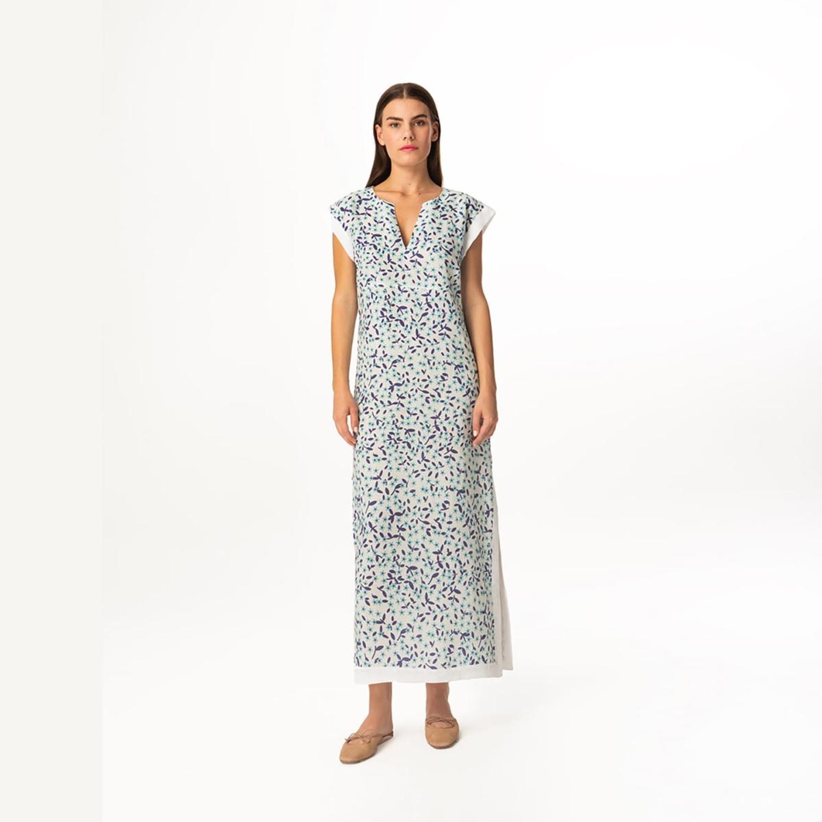Discover effortless elegance with our Printed Linen Maxi Dress featuring Slits and White Details. Crafted from premium linen fabric, this dress combines breathability and lightweight comfort, ideal for any season. The printed design adds a touch of sophistication, while the slits enhance movement and flow.