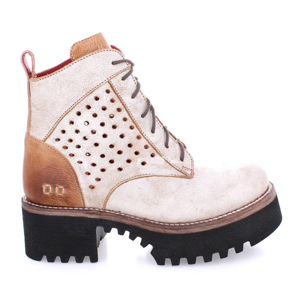 Through DMs online between our staff, we are all talking about this one. Make a bold fashion statement in Tanzania. This eccentric ankle boot has a unique design and stands out with its playful elements, including circular perforations, red leather lining and two-tone leather effect. Tanzania has a chunky platform sole providing a comfortable, lightweight, and stable base to walk on. Tanzania has a rounded toe, and lace-up front has you fit and secure. Pair Tanzania with your favorite maxi dress, or a vintage pair of cuffed denim and top off with your cherished stiff brim hat.