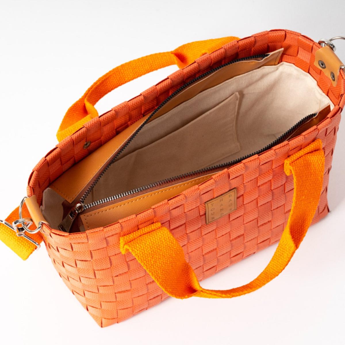 Durable and lightweight basket bag knitted by hand from recycled plastic! It offers safe use with its cotton inner lining and is easy to clean. It is ready to become your favorite piece thanks to its useful inner pocket detail and adjustable cotton column straps! You can do a favor for nature by choosing this bag produced with environmental awareness!