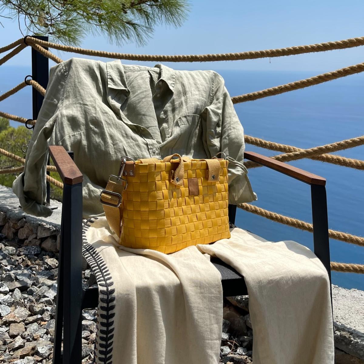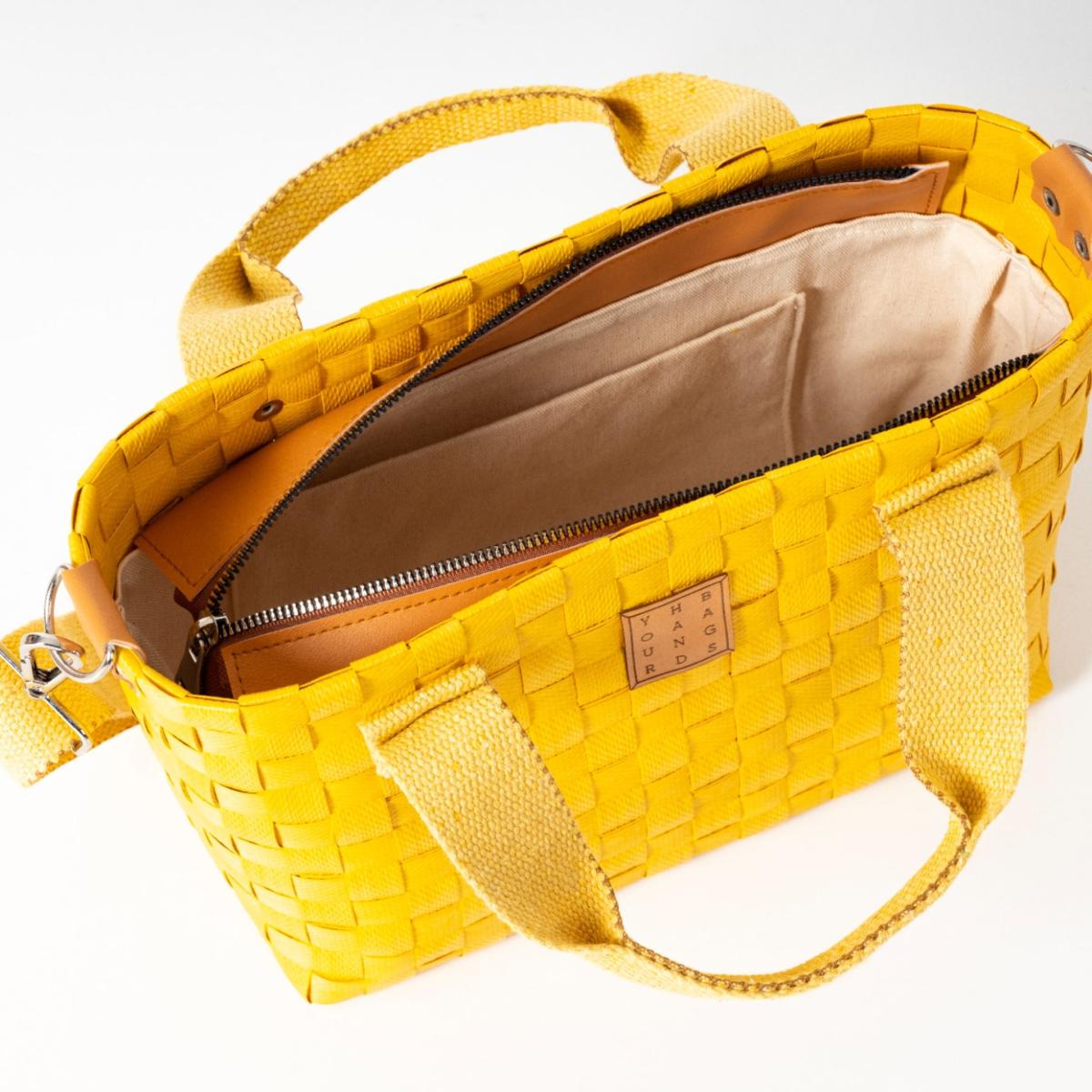 Durable and lightweight basket bag knitted by hand from recycled plastic! It offers safe use with its cotton inner lining and is easy to clean. It is ready to become your favorite piece thanks to its useful inner pocket detail and adjustable cotton column straps! You can do a favor for nature by choosing this bag produced with environmental awareness!