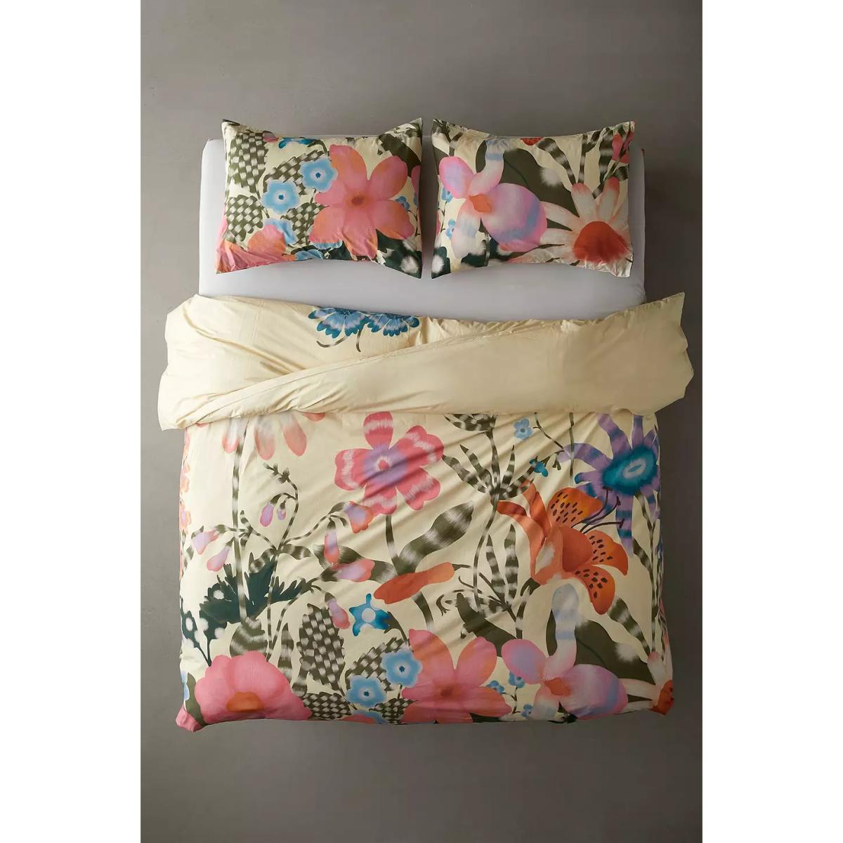 Revamp your bedroom with this lightweight duvet cover cut from crisp, breathable cotton. Finished with abstract floral motifs all over the top with a solid panel at the reverse. **Content + Care** \- 100% Cotton \- Machine wash **Size** \- Single (includes 1 pillowcase): 135cm (W) x 200cm (H) \- Double (includes 2 pillowcases): 200cm (W) x 200cm (H) \- King (includes 2 pillowcases): 230cm (W) x 220cm (H) \- Pillowcase: 75cm x 50cm