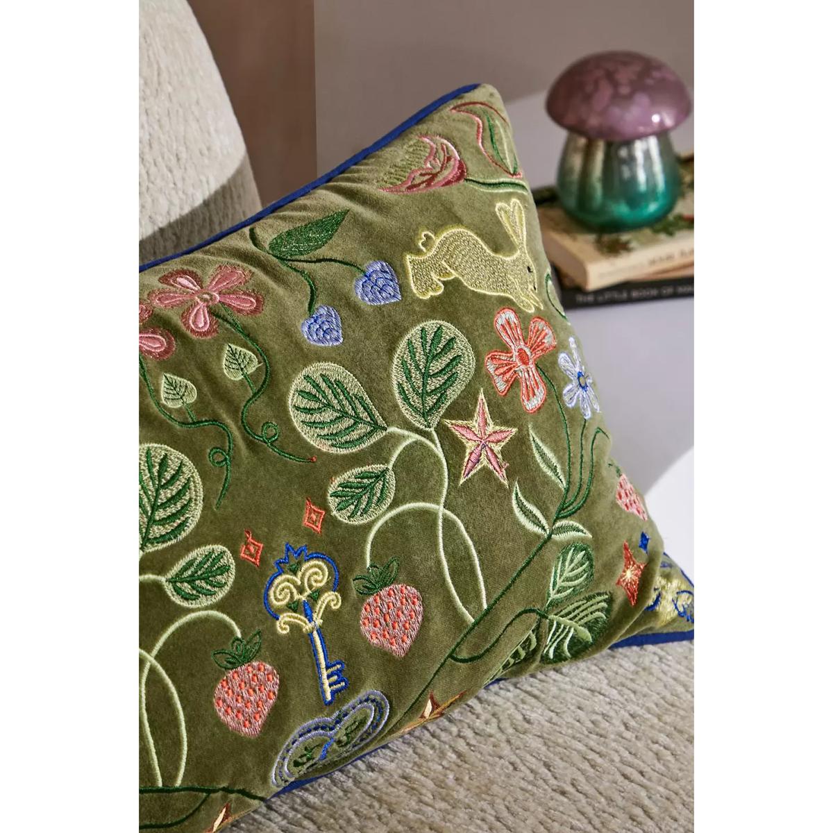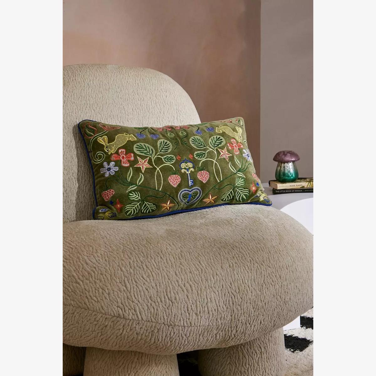 Wonderland Green Embroidered Cushion - Light Green ALL at Urban Outfitters