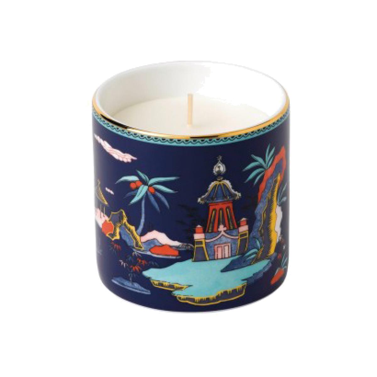 The Wonderlust scented blue pagoda makes for a striking decorative piece, especially in contemporary or eclectic interiors. Its rich, deep blue exterior with intricate detailing adds colour and character without overwhelm, making it perfect for side tables or mantlepieces. I love pairing it with soft, neutral textiles or minimalist furniture to let the candle’s design stand out. Practical styling tips include placing it alongside other textured accessories, such as woven throws or ceramic pieces, to create an inviting yet curated look. Its bold design works well in spaces where you want to add a touch of artistry and warmth, especially in rooms with a colour palette that complements navy or deep hues.