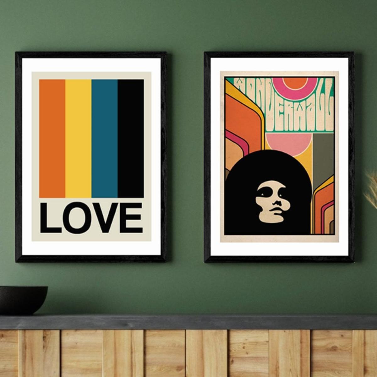 This Wonderwall 70s print is a fantastic piece for adding a bold graphic element to your space. I love its striking black and colour contrast, which works particularly well in modern or eclectic interiors. It’s versatile enough to sit centre-stage in a living room or create an eye-catching vignette in a home office or hallway. Practical styling tips include pairing it with simple, monochrome frames to enhance its graphic impact, or styling it alongside vintage or textured accessories for a more eclectic vibe. Because of its vibrant, retro-inspired design, it’s especially well-suited to contemporary spaces that benefit from a pop of colour and personality.
