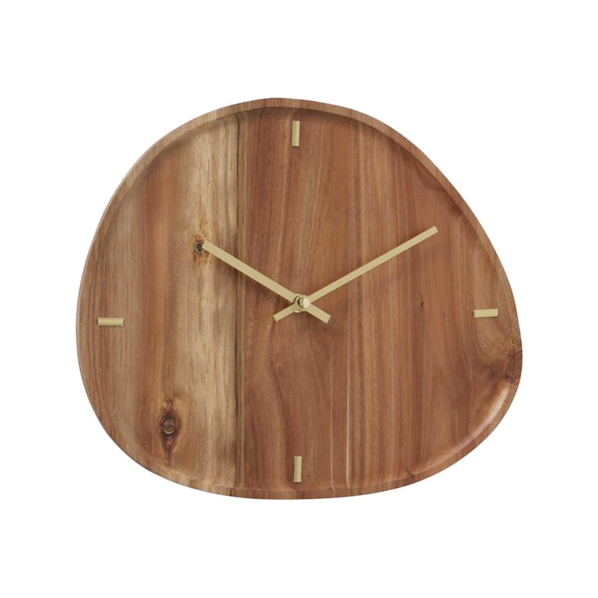 Acacia Wood And Metal. Wood & Gold Wall Clock, Neutral | Barker & Stonehouse