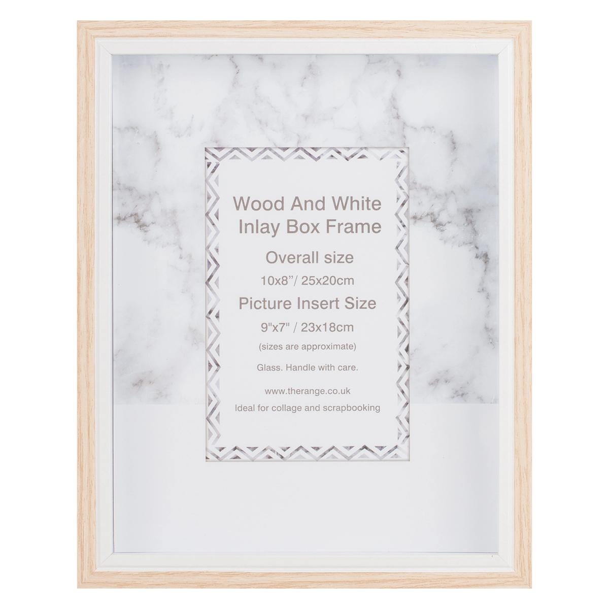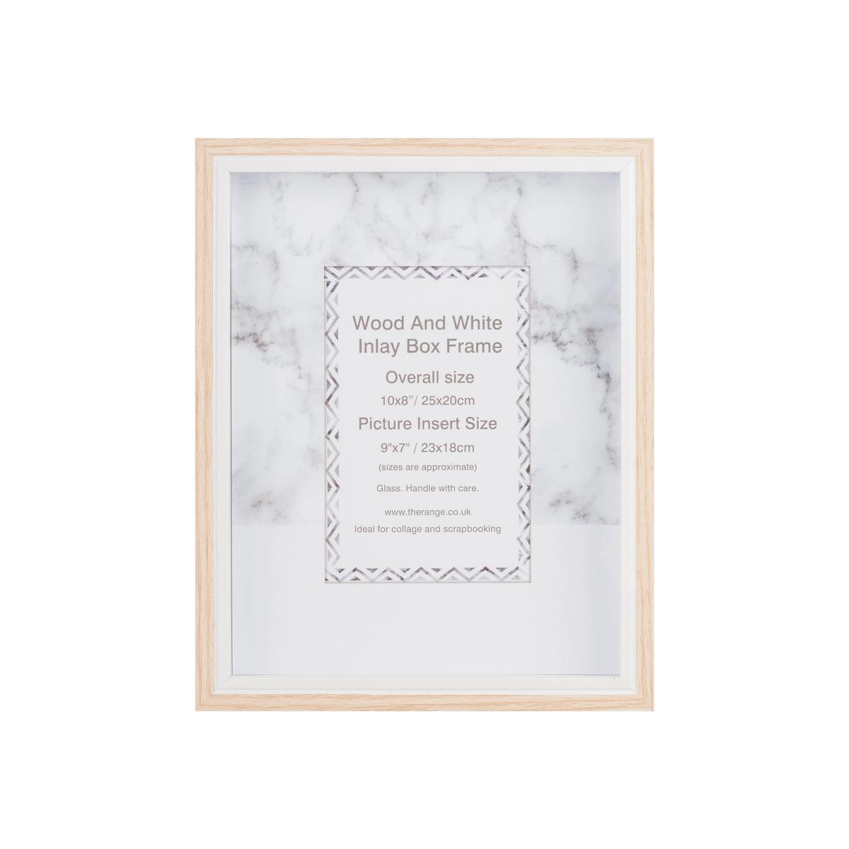 Turn cherished items into wonderful wall displays, or create fabulous collages with the Wood and White Inlay Box Frame. Designed with a border of light wood and pure white, this neutral box frame will blend with your existing decor and help you bring a personal touch to the room.