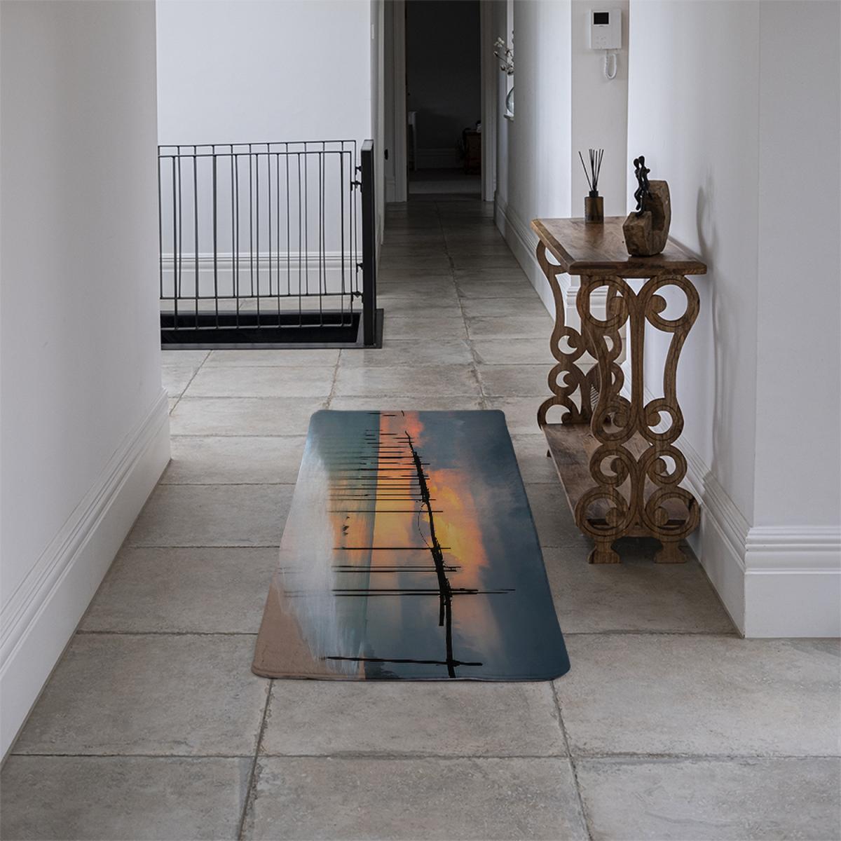 I really like this runner for adding a pop of colour and a hint of tropical warmth to a variety of interiors. Its sunset at sea hues lend themselves well to rooms with neutral palettes, making it ideal in minimalist or contemporary spaces. It works particularly well in hallways or narrow corridors, where it can elongate the space and create visual interest. For practical styling, consider pairing it with wooden or rattan furniture to enhance the natural, beachy vibe. Keep surrounding accessories simple to let the vibrant pattern and colours stand out, and ensure the rug is well-secured with non-slip underlay for safety and longevity.