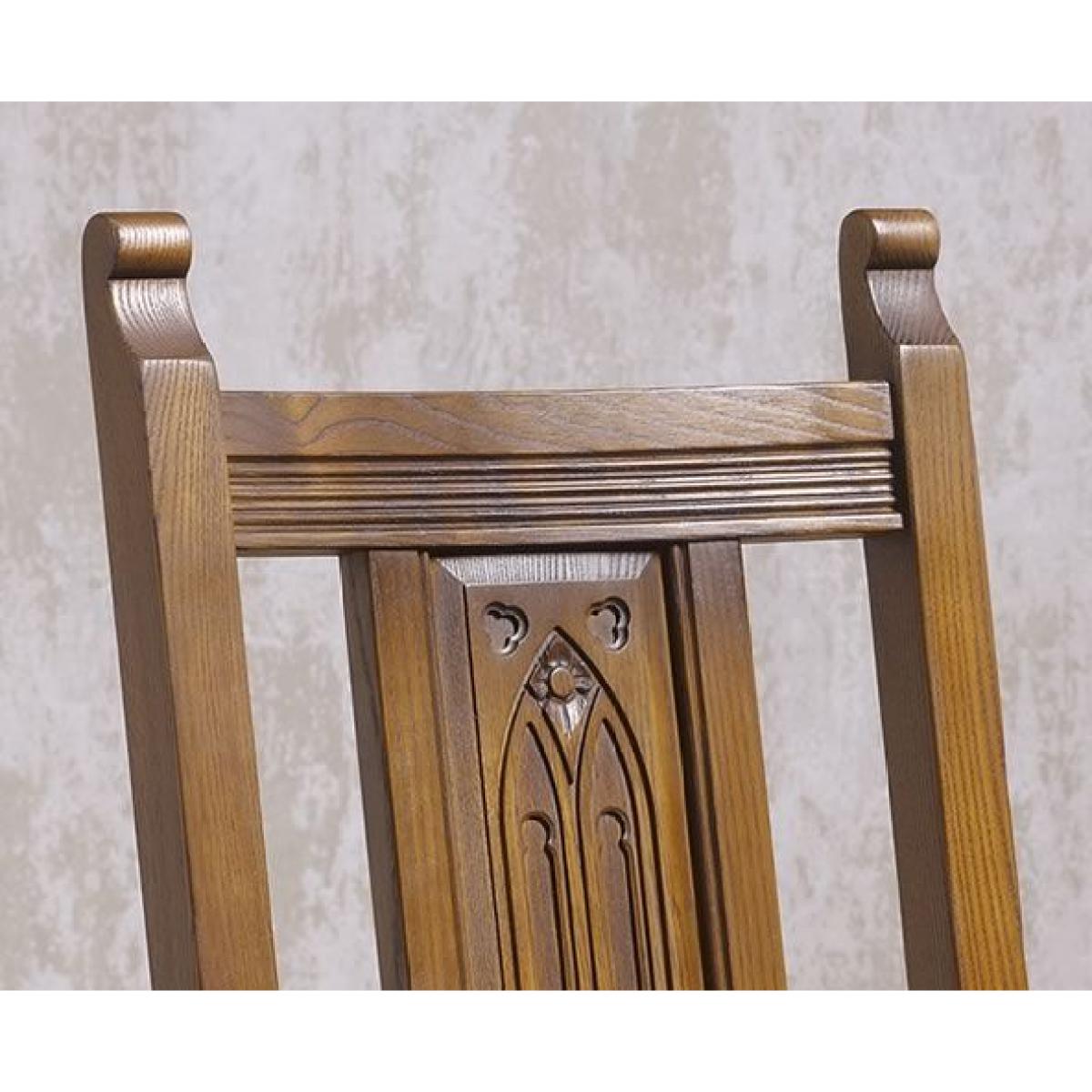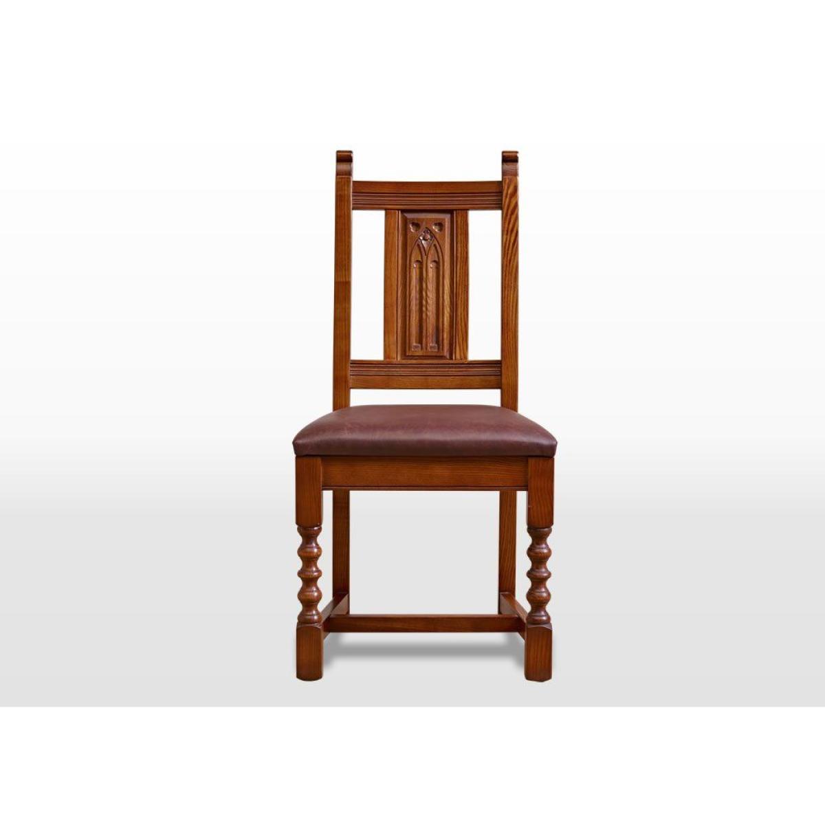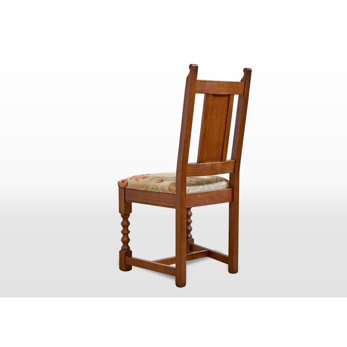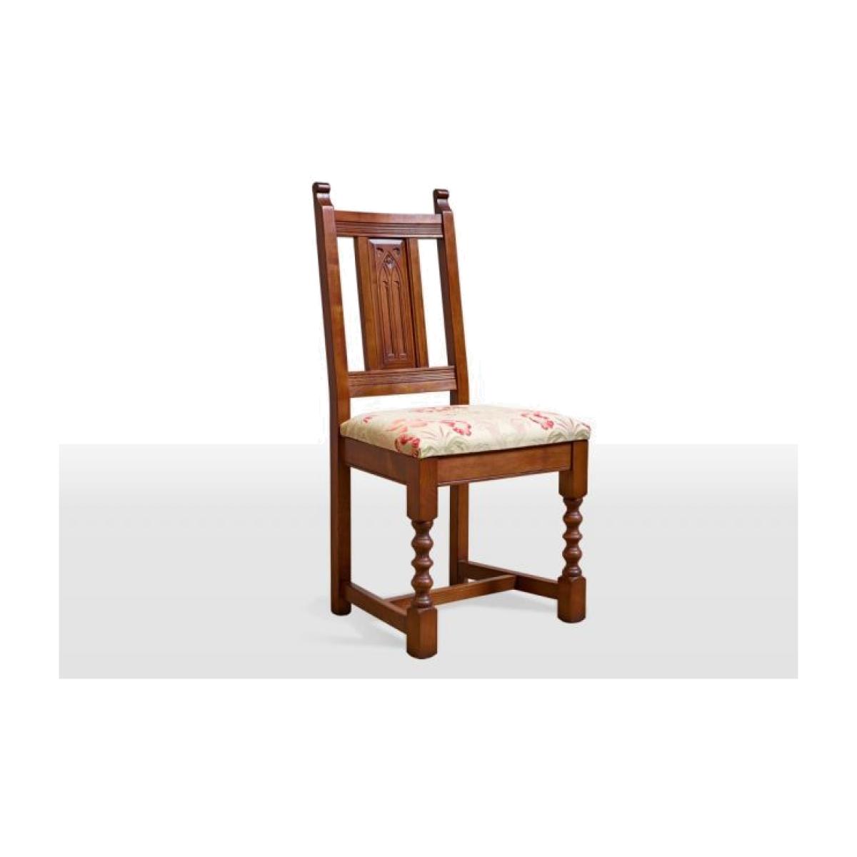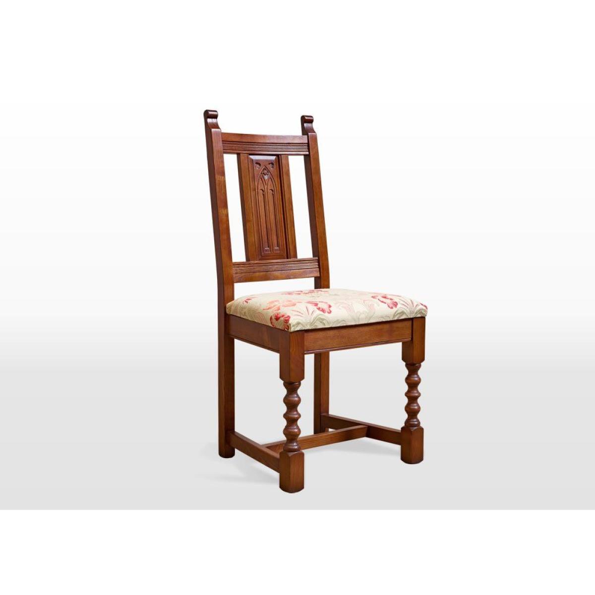 Add traditional style to your dining room with the Wood Bros Old Charm Dining Chair. It is a high backed wooden frame design and has a comfy upholstered seat and timber panelled back. Featuring turned front legs, arm rails, an upholstered seat and timber back panel. The panel is hand carved with a traditional arch motif. Traditional in style, authentic in character, and a beautiful choice for any style of home, the Old Charm collection of living room occasional and storage pieces and dining room tables and chairs draws inspiration from England's golden years of furniture design and cabinet making. Using only the finest quality materials, Old Charm pieces showcase turned legs, carved embellishments, secret storage compartments and metal hardware. Classic in style and wonderfully well-crafted, Old Charm makes a return to the living and dining rooms of a bygone era an effortless pleasure. Dimensions: W 50 x D 52 x H 102cm. Sold individually. Made in England. Fully assembled. * Please note: The oak used is full of knots and gnarls and we are proud to say that no piece of Old Charm furniture is ever alike! The rustic grade oak is known for its character, fine open grain, durability and ideal for day to day living. The perfect material for showcasing these designs.