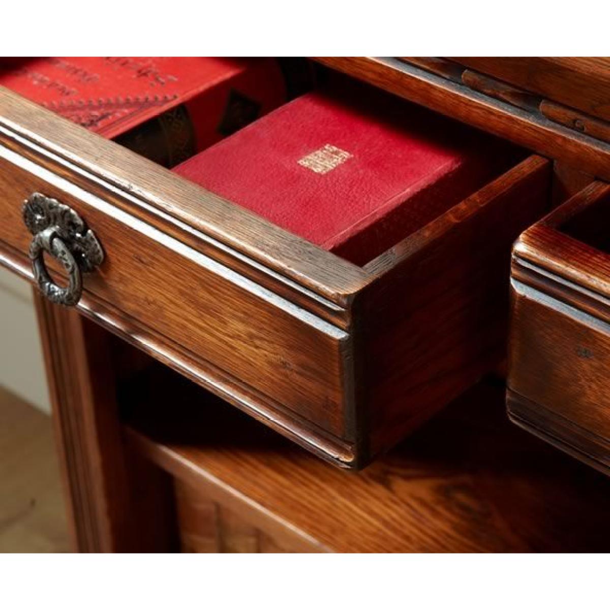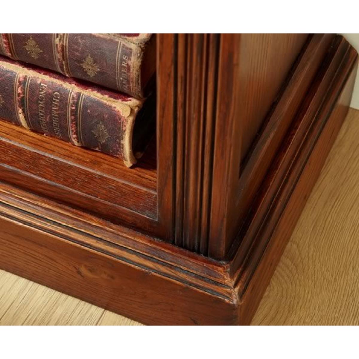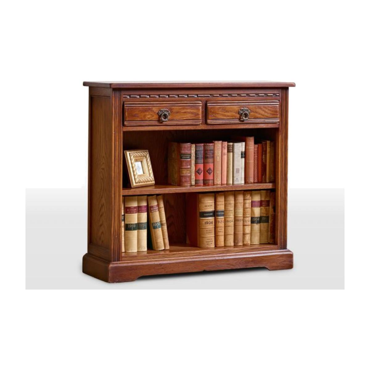 The Wood Bros Old Charm Low Open Bookcase With Drawers offers display and storage space. It is supplied with an adjustable wooden shelf as well as two drawers. The Bookcase is an elegantly proportioned design with decoration is kept to a minimum with chop carving and scratch beading down the sides. Traditional in style, authentic in character, and a beautiful choice for any style of home, the Old Charm collection of living room occasional and storage pieces and dining room tables and chairs draws inspiration from England's golden years of furniture design and cabinet making. Using only the finest quality materials, Old Charm pieces showcase turned legs, carved embellishments, secret storage compartments and metal hardware. Classic in style and wonderfully well-crafted, Old Charm makes a return to the living and dining rooms of a bygone era an effortless pleasure. Dimensions: W 91.5 x D 30 x H 84cm Made in England. Fully assembled. * Please note: The oak used is full of knots and gnarls and we are proud to say that no piece of Old Charm furniture is ever alike! The rustic grade oak is known for its character, fine open grain, durability and ideal for day to day living. The perfect material for showcasing these designs.