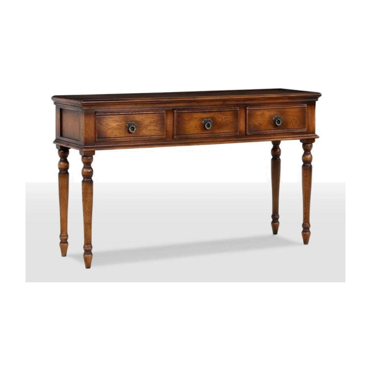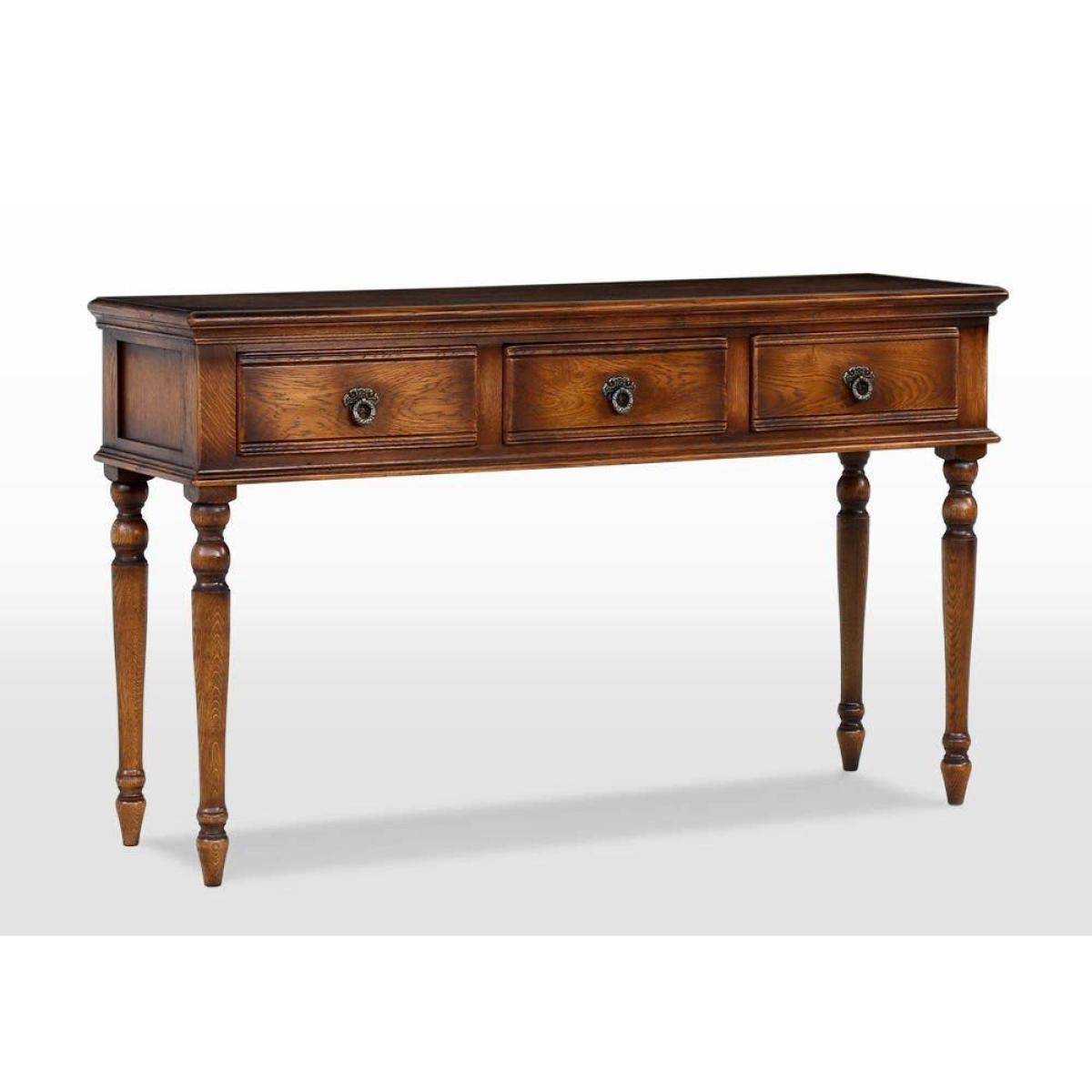 The Old Charm Servery Table OC3191 offers a practical combination of extra storage and display options, perfect for people who like to entertain. Its a wide yet dainty good looking peice with 3 drawers and display top. It. Features three good depth drawers set below the table top. The spindle legs finish off this peice, giving this table an elegant proud inspired look and feel. The peice is wide but not too deep so practical to compliment a dining area. Traditional in style, authentic in character, and a beautiful choice for any style of home, the Old Charm collection of living room occasional and storage pieces and dining room tables and chairs draws inspiration from England's golden years of furniture design and cabinet making. Using only the finest quality materials, Old Charm pieces showcase turned legs, carved embellishments, secret storage compartments and metal hardware. Classic in style and wonderfully well-crafted, Old Charm makes a return to the living and dining rooms of a bygone era an effortless pleasure. * Please note:. The oak used is full of knots and gnarls and we are proud to say that no piece of Old Charm furniture is ever alike! The rustic grade oak is known for its character, fine open grain, durability and ideal for day to day living. The perfect material for showcasing these designs.