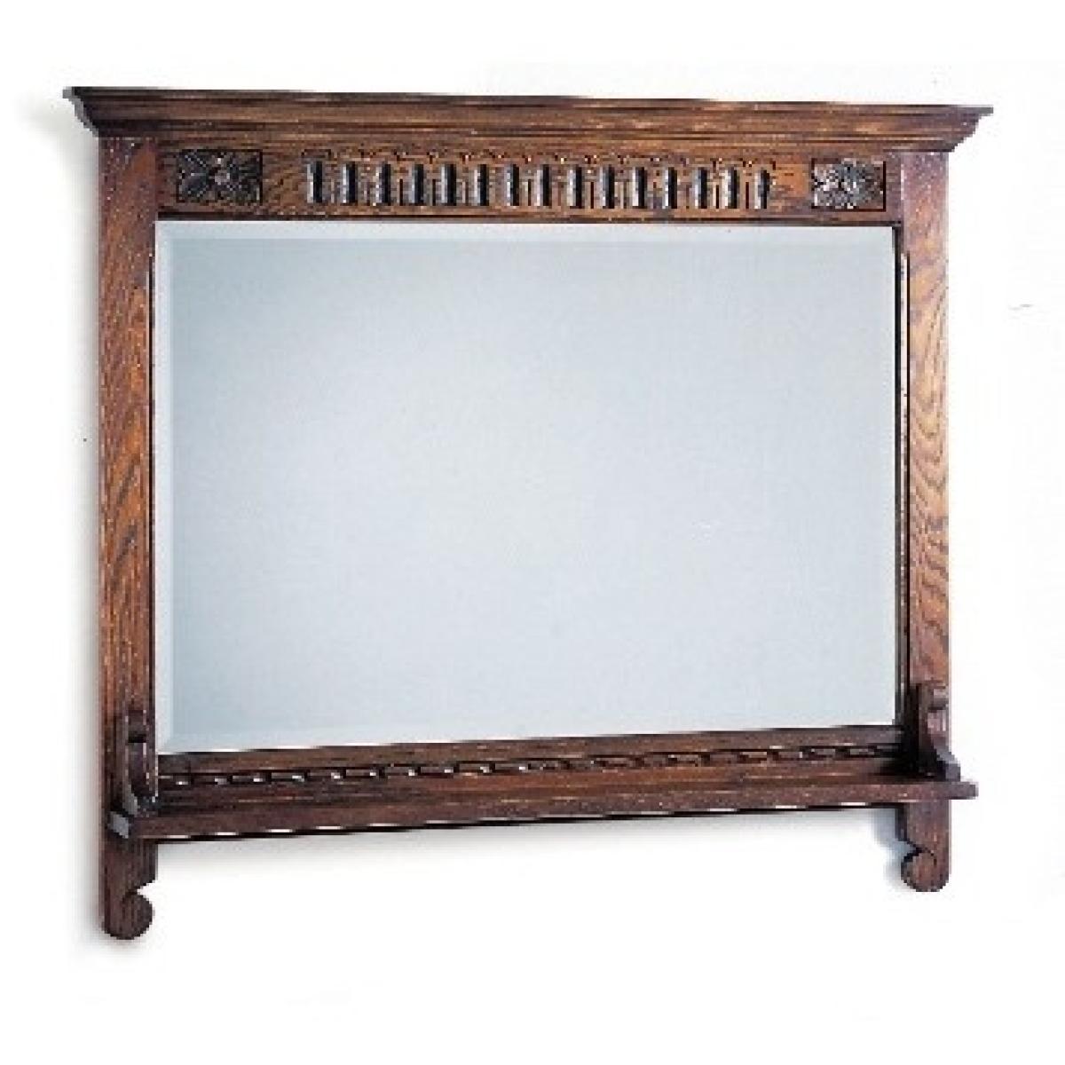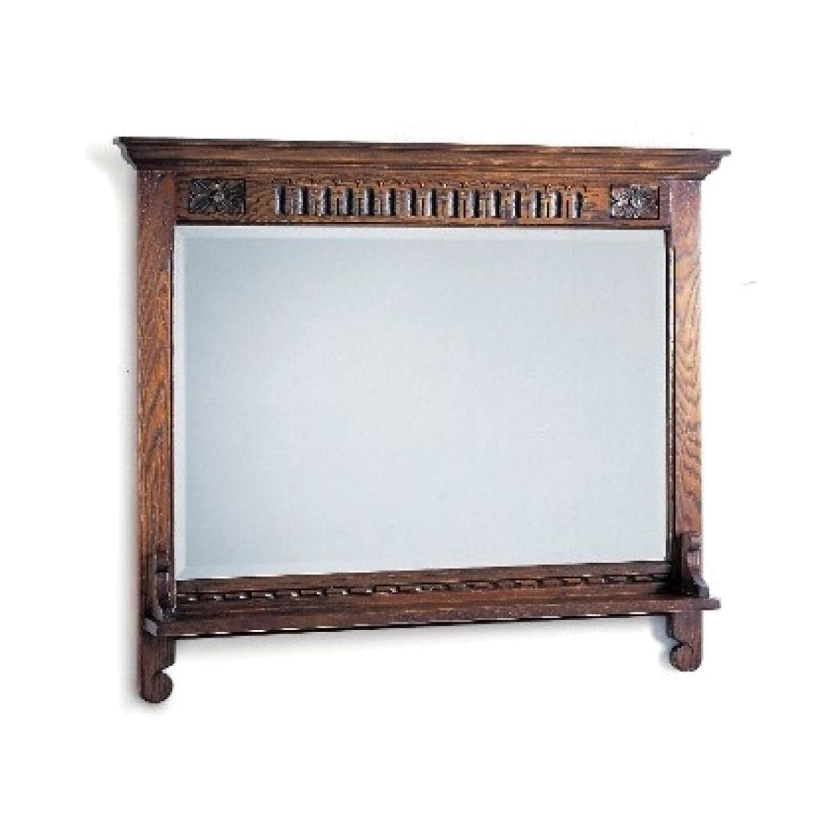 This stylish wall mirror is easily wall hung with a baton (included) The narrow shelf can also be used for elusive keys or small change. The bevelled glass sits within the character oak frame creating a unique, vintage inspired look. Our design team have chosen classical proportioned cornicing to adorn this handsome mirror. Traditional in style, authentic in character, and a beautiful choice for any style of home, the Old Charm collection of living room occasional and storage pieces and dining room tables and chairs draws inspiration from England's golden years of furniture design and cabinet making. Using only the finest quality materials, Old Charm pieces showcase turned legs, carved embellishments, secret storage compartments and metal hardware. Classic in style and wonderfully well-crafted, Old Charm makes a return to the living and dining rooms of a bygone era an effortless pleasure. Made in England. Dimensions:W 108 x D 13 x H 92cm * Please note: The oak used is full of knots and gnarls and we are proud to say that no piece of Old Charm furniture is ever alike! The rustic grade oak is known for its character, fine open grain, durability and ideal for day to day living. The perfect material for showcasing these designs.