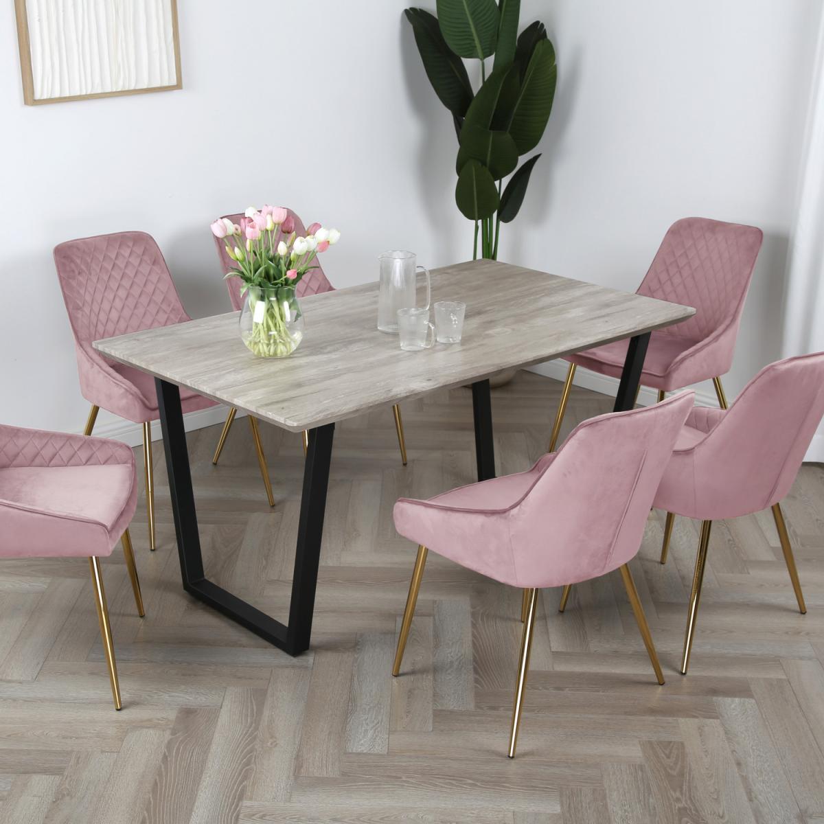 Introducing our wood dining set, a 6-seater dining table and chair set that skillfully melds dining table modern style with traditional comfort. With its stylish design and practical features, this dining set guarantees to be the focal point of your dining space. The dining table, which has a wooden feel and is skillfully made to accommodate six people, is the centrepiece of this set, with steel with black powder coating as material. Its dining table modern design captures the essence of contemporary dining while ensuring durability and aesthetic appeal. It features clean lines and a wooden-effect finish. The table is a versatile addition to your home because it provides a warm backdrop for a variety of interior designs. Invest in our wood dining table and chairs, which include a 6-seater dining table and chairs, to nimbly combine modernity with usefulness in your dining area.