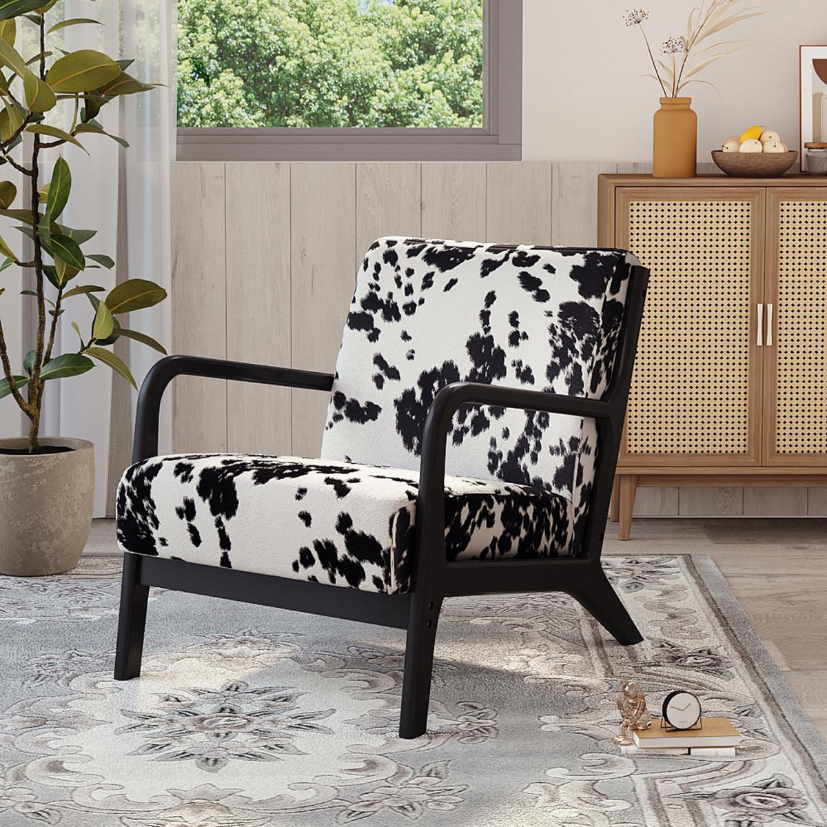 Wood Frame Black and White Spots Velvet Upholstered ArmchairWood Frame Black and - White
