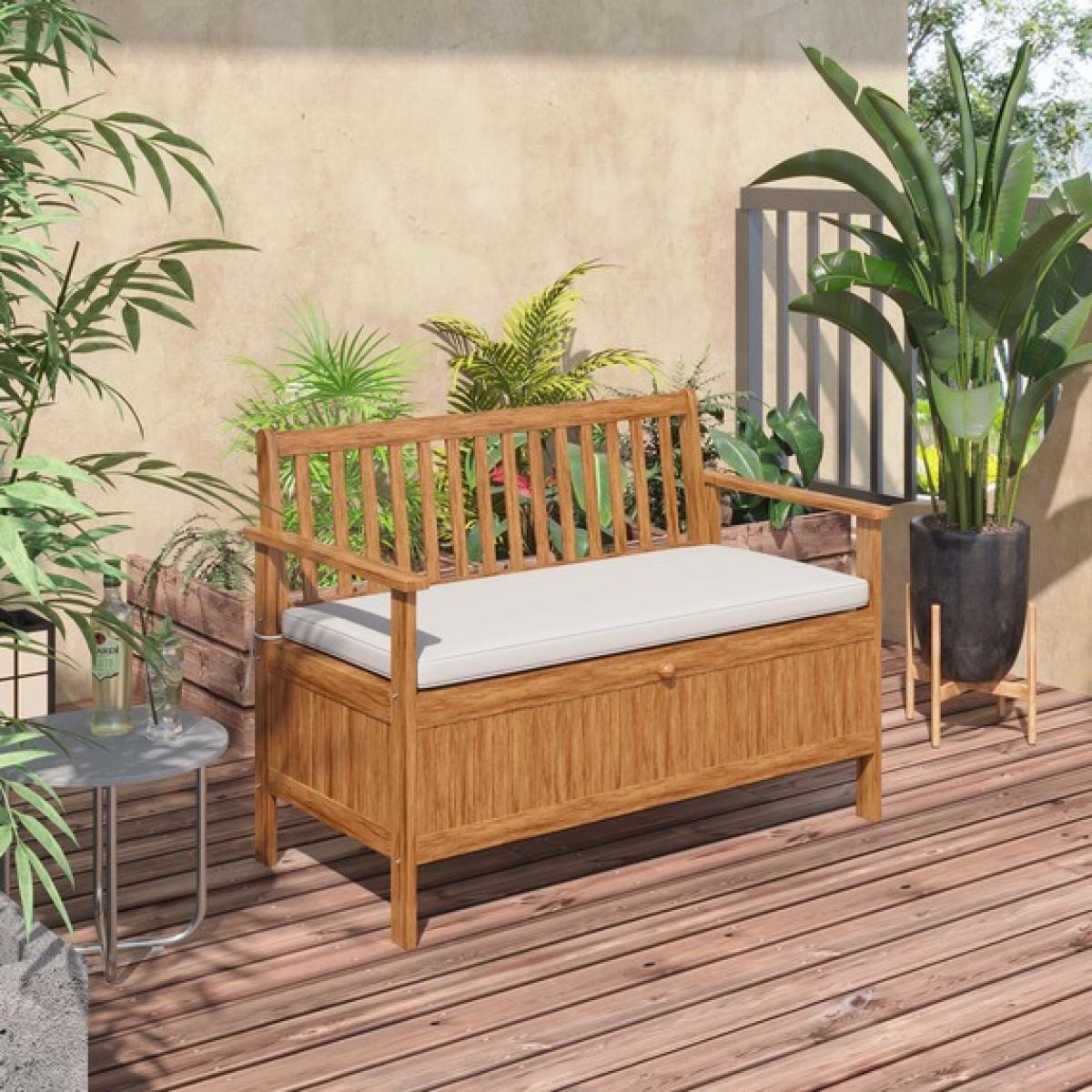 Wood Garden Bench 2 Seater Storage Chest - Teak