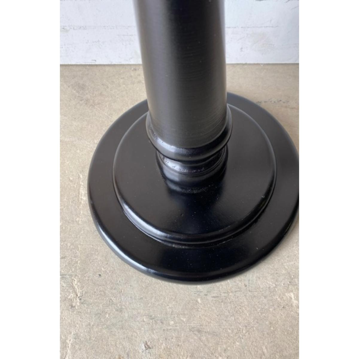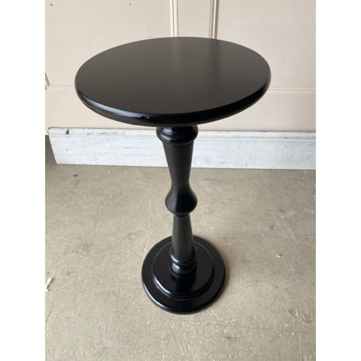 The Wood Turned Black Side Table is a sleek little showpiece your space has been waiting for. Though not quite flawless - with a couple of subtle scratches and marks on the surface it still brings undeniable charm. Featuring elegant, hand-turned curves and a glossy black finish, this compact side table brings bold style in a small package. Whether it’s holding your morning coffee, an evening drink, or a glowing candle, it does it all with flair. A perfect mix of vintage soul and modern attitude. Measurements: W30cm x H63.5cm Materials: Pine & MDF