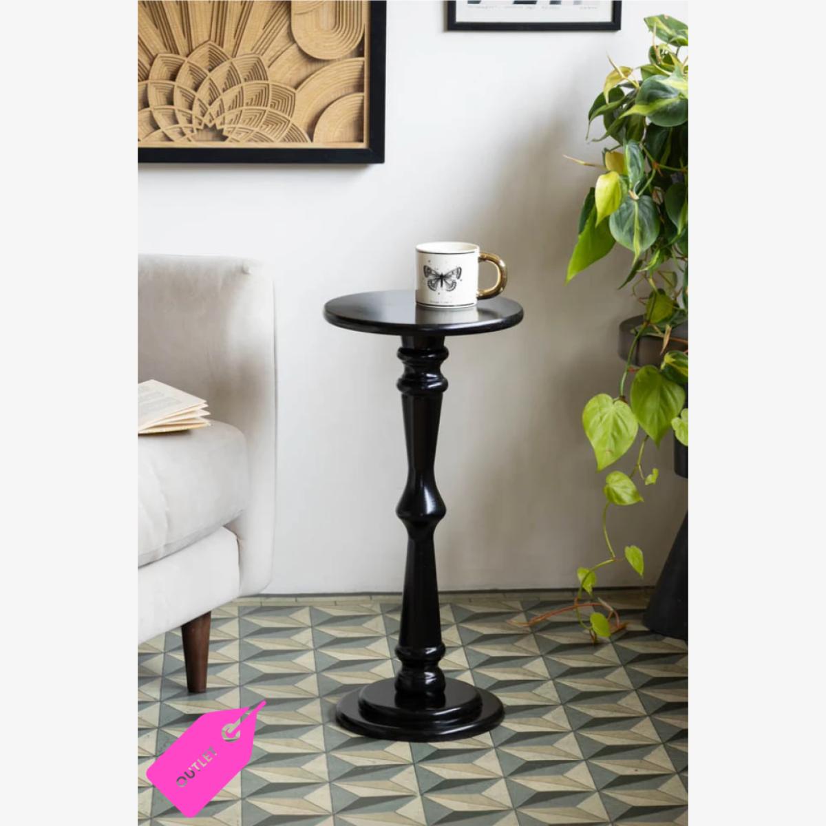 I love this little side table because of its versatile yet striking look. The black wood turns it into a statement piece that can complement both modern and vintage interiors. It works particularly well in monochrome schemes or as a contrasting accent in more colourful or eclectic spaces. Practical styling tips include using it as a plant or lamp stand to add height variation, or pairing it with textured ceramics and metallic accents for a layered look. Its size makes it perfect for nesting between armchairs or beside a sofa, and because it's a seconds item, it offers great value without compromising on style.