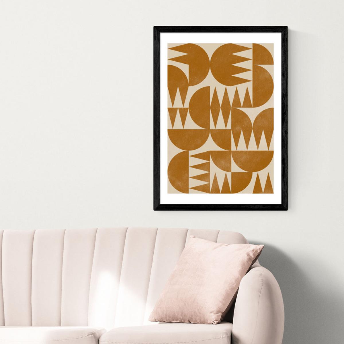 This artwork is hand crafted and made to order for you. Get into the Mid-century revival trend with this simple block-style print by Alisa Galitsyna. A cool pattern to hang in your bedroom. Additiona. View More. This artwork is hand crafted and made to order for you. Get into the Mid-century revival trend with this simple block-style print by Alisa Galitsyna. A cool pattern to hang in your bedroom. Additional Information:. Black Obeche Wood Frame. A2 Sized Print. Giclee printing process lasting up to 70 years from fading. 210gsm acid free archival paper with a digital white border. For every print sold a percentage of profit is donated to Cool Earth, a charity combating deforestation in the rainforest.