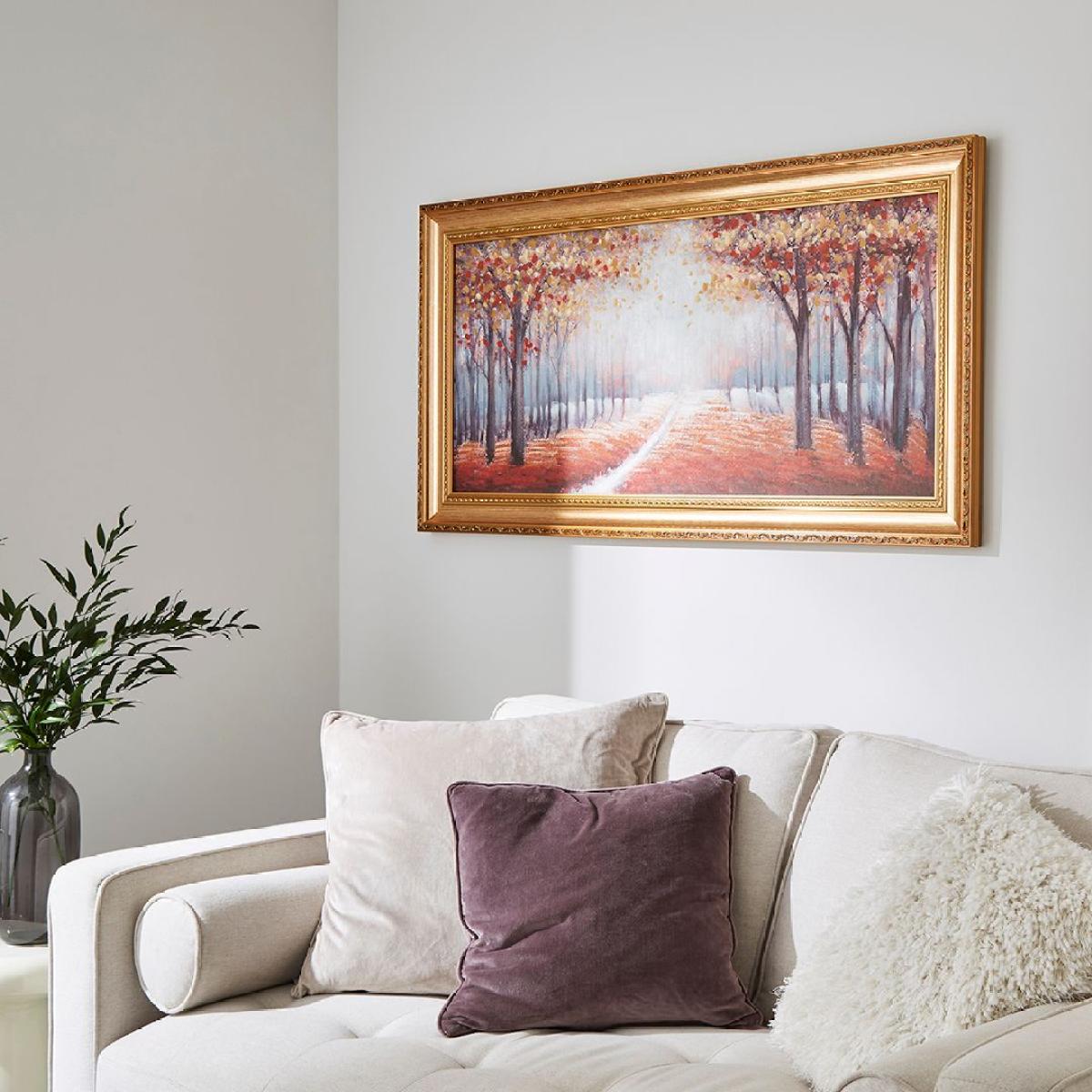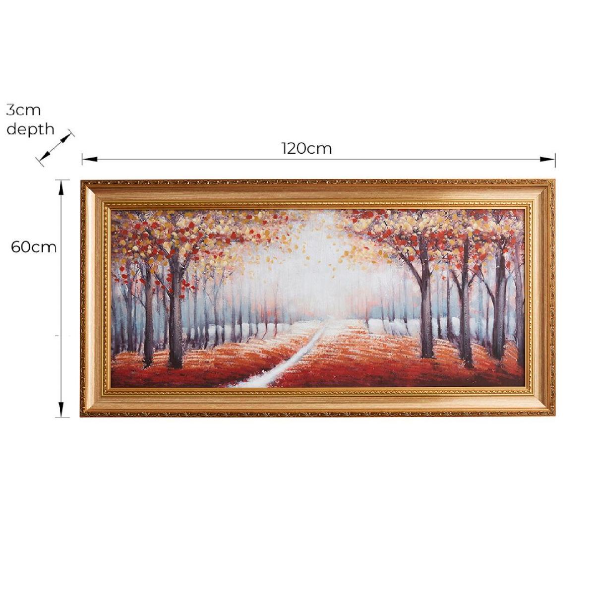 Wooded Trail framed canvas wall art, a hand-painted scene with a gold frame. Bring the warmth of autumn indoors with the Wooded Trail framed canvas wall art. This landscape oil painting beautifully captures a peaceful woodland path bathed in rich seasonal tones—burnt orange, deep red and golden yellow. The hand-painted details give the piece depth and texture, inviting you into the quiet serenity of the forest. Framed in an ornate, moulded gold frame, it adds a classic, timeless charm to any living space. A perfect choice for those who love nature-inspired décor with an elegant, heritage feel. Wooded Trail framed canvas wall art, a hand-painted scene with a gold frame. Bring the warmth of autumn indoors with the Wooded Trail framed canvas wall art. This landscape oil painting beautifully captures a peaceful woodland path bathed in rich seasonal tones—burnt orange, deep red and golden yellow. The hand-painted details give the piece depth and texture, inviting you into the quiet serenity of the forest. Framed in an ornate, moulded gold frame, it adds a classic, timeless charm to any living space. A perfect choice for those who love nature-inspired décor with an elegant, heritage feel.