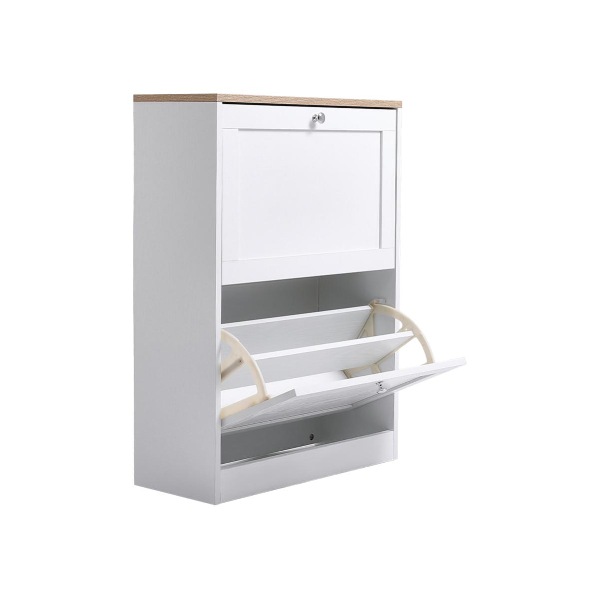 Wooden 2 Drawer Flip Down Shoe Cabinet - White