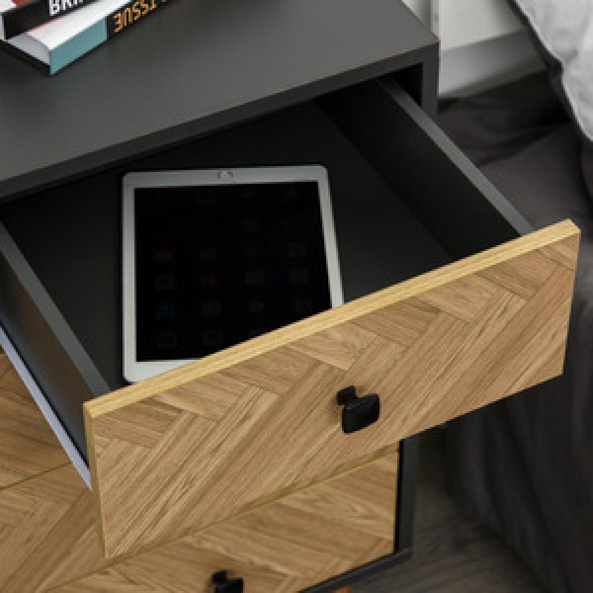 I’m a fan of this five-drawer storage chest because its mix of dark-grey casing and natural-wood fronts strikes a modern yet warm note without overwhelming a space. It sits equally well in a Scandi-inspired living room, a pared-back home office or even a contemporary hallway, thanks to its clean lines and neat metal handles. To style it, keep the top clutter-free - perhaps a slim table lamp, a small plant and a tray for keys - and tuck away papers or textiles in the drawers. Against a pale wall, it adds subtle contrast; pair with a round mirror or framed art above to bring the whole look together.