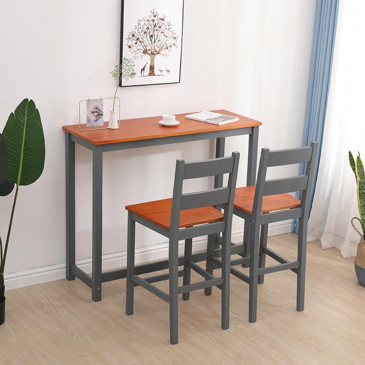 Wooden Bar Table Set with 2 Stools - Grey and Honey