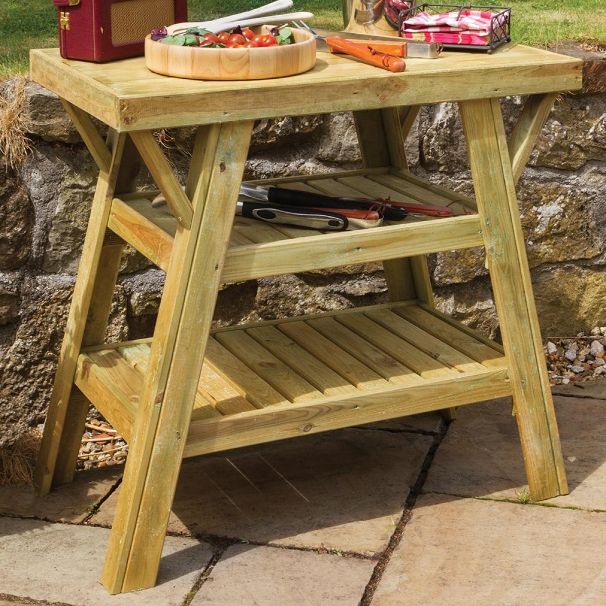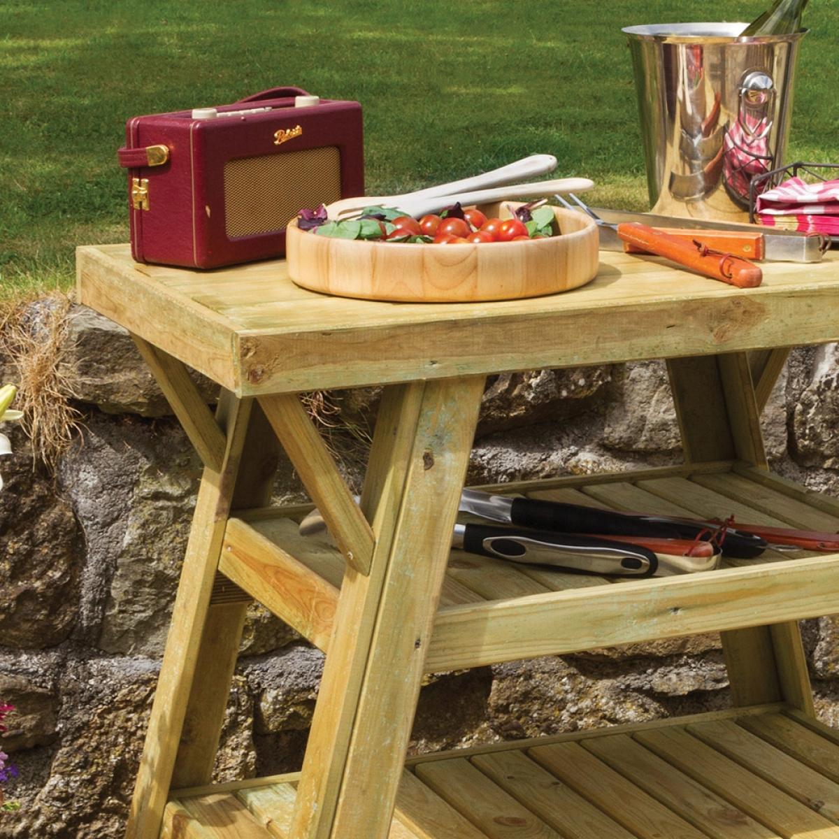 Get your garden ready for entertaining this season, with the Wooden BBQ Side Table. The perfect accompaniment to any outdoor dining setup, the FSC certified timber structure holds 2 large shelves, so utensils, condiments, plates and nibbles can be displayed and stored. Pressure treated and built to last, this practical addition will see you through many summers to come. Perfect left with the natural wood finish or paint with pastel shades andcompletely transform your back garden! With a large selection of barbecues and accessories available here at Cuckooland, make this a summer to remember!.