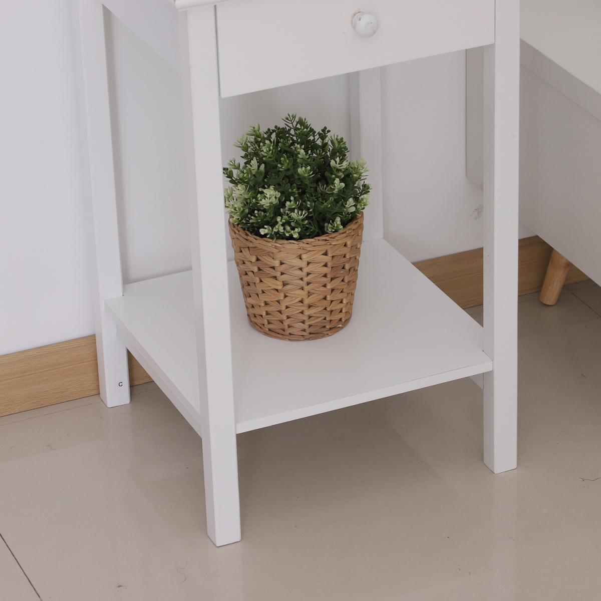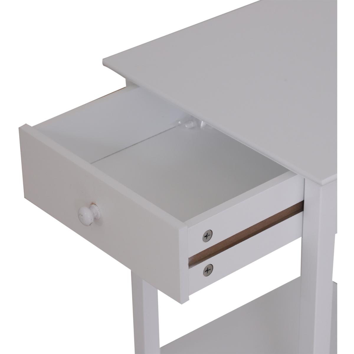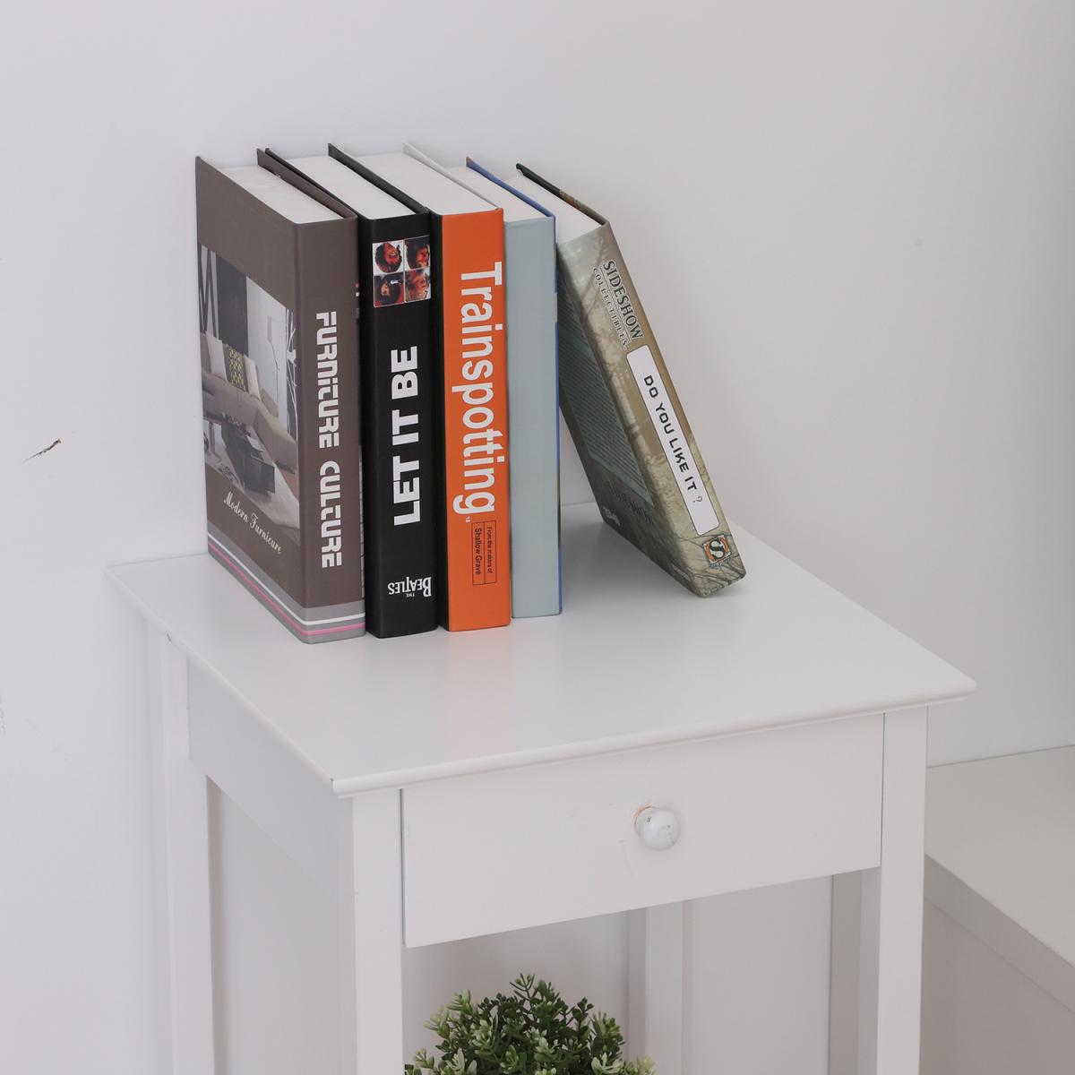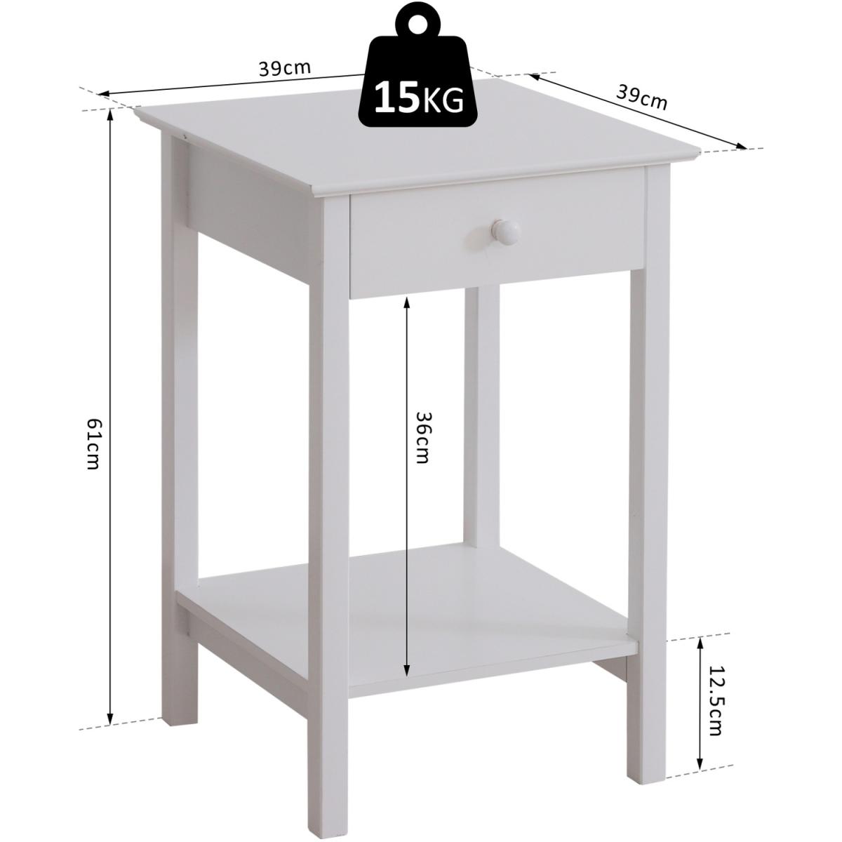Bring elegance into your home decor with this sleek and stylish side table from HOMCOM. In a fresh white finish, it features a spacious drawer with a handle and a bottom shelf, making it perfect for storage and organisation in your bedroom, kitchen, living room or hallway. Made from MDF, it has been built to last for years to come, giving you a sturdy and durable addition to your home furniture. Crafted into a spacious, yet compact design, it is ideal for smaller areas of the home and its smooth surface allows it to be cleaned easily. A smart and fresh piece of furniture for every home.