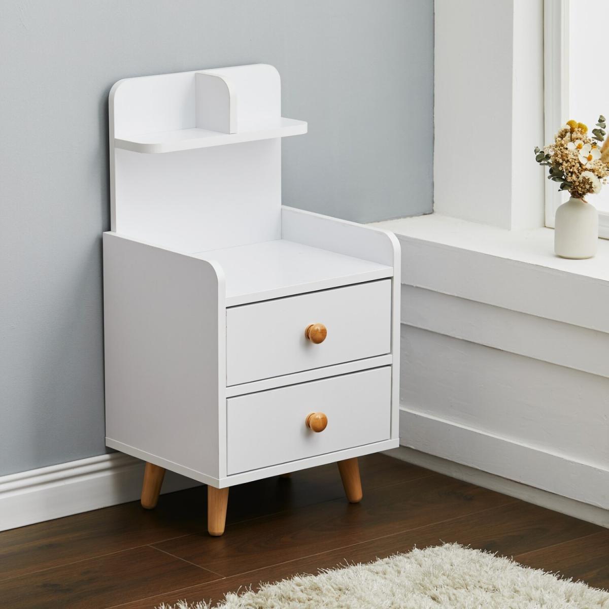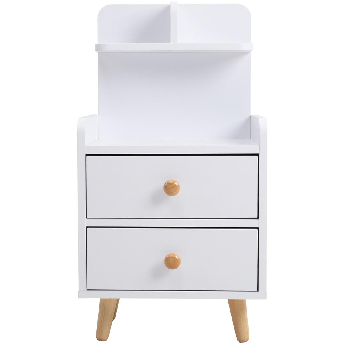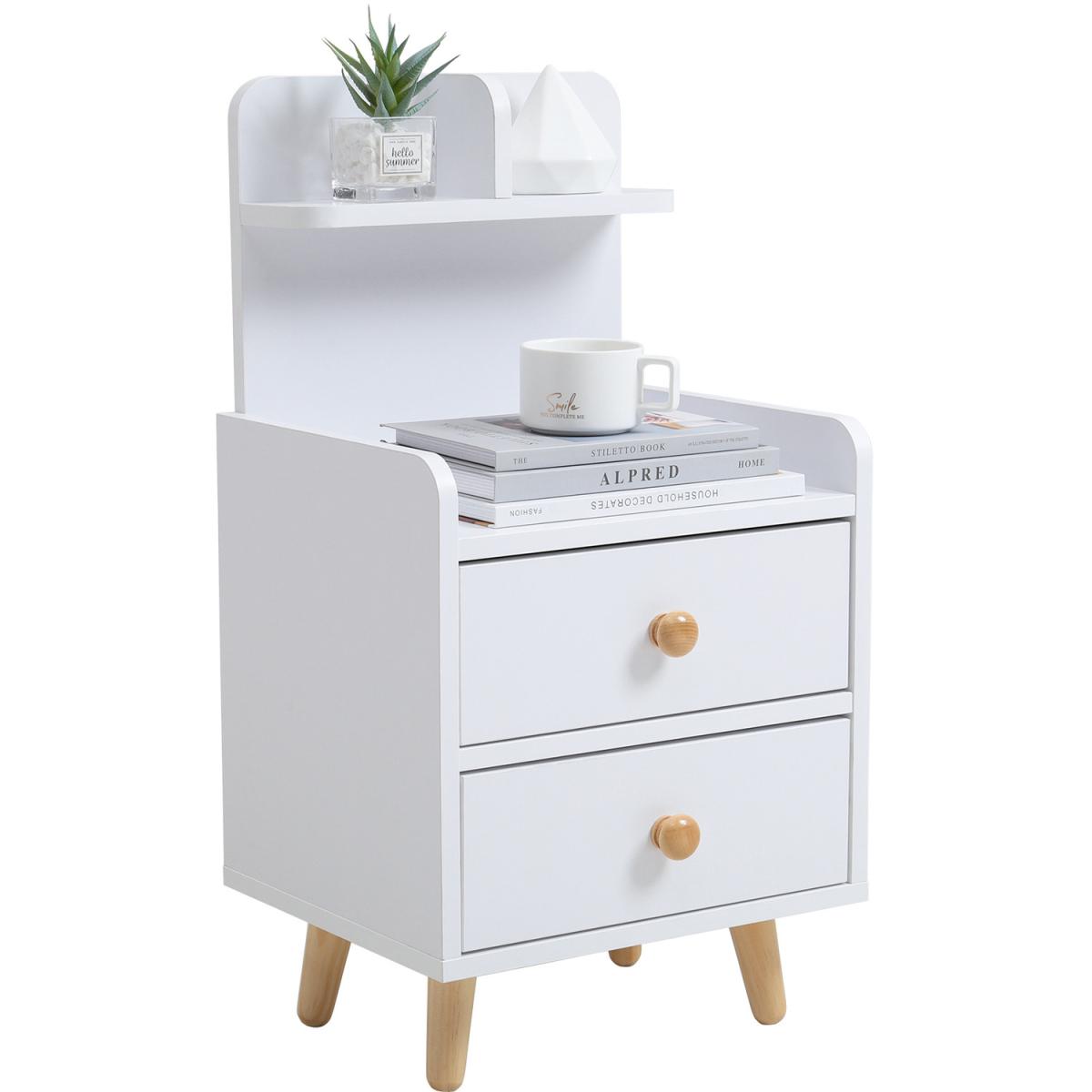 Optimize your vertical space with our Livingandhome Wooden Bedside Table with Drawer. Crafted from high-quality and durable MDF, this nightstand is designed with a shelf and various compartments, providing convenient storage for your everyday items and personal belongings. The table features two raised guards on both sides to prevent your items from tipping over. Its compact design allows it to fit seamlessly into narrow nooks, making it ideal for compact spaces or individuals with lengthy nighttime routines. The clean white painted finish adds a touch of elegance to your bedroom decor, while the spacious drawer offers ample storage space for your essentials. Organize your bedside necessities with style and functionality using this versatile bedside table.