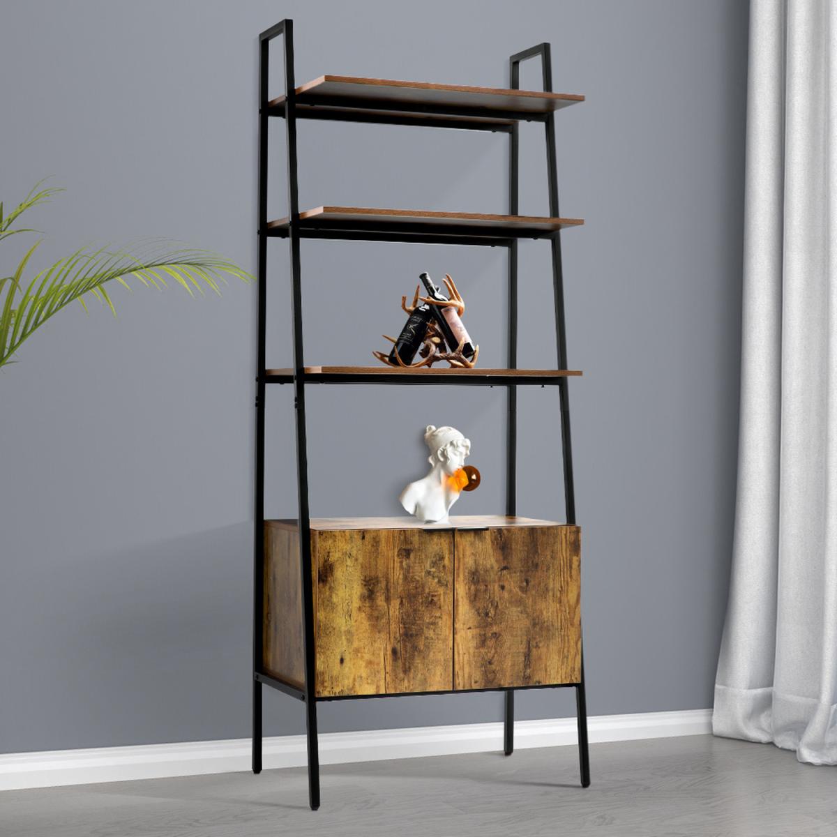 Wooden Bookshelf with Cabinet - Rustic Brown