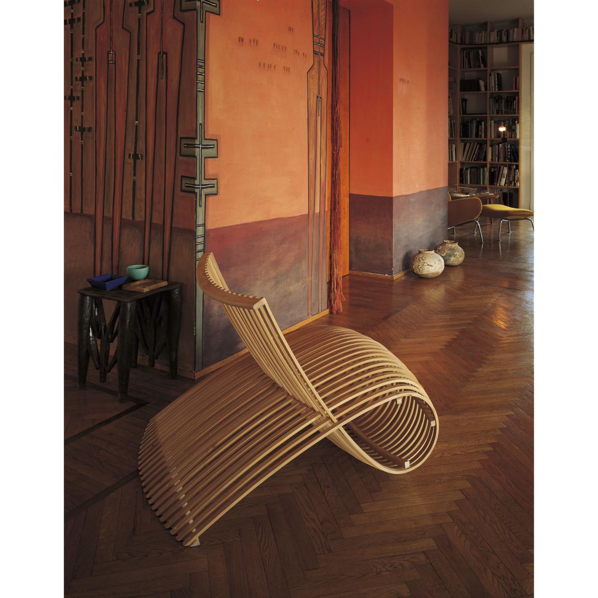 Treat yourself to an ORIGINAL iconic piece by Cappellini. An original will never lose its value. It will stay with you for your whole life, and even longer, perfect for passing on to the next generation. Marc Newson was named by Time magazine as one of the "100 most influential people in the world", and received countless awards and distinctions. The Australian designer is a lover of life and Earth: his pieces are odes to nature. After smashing several records at auctions, Newson's work represents almost 25% of the entire contemporary design market. His work can be found in the permanent collections of many illustrious museums. From chairs and restaurants to planes and spaceships, Australian designer Marc Newson stops at nothing. Sleek and futuristic, Marc Newson's style is all curves and transparency, and the right angles are almost non-existent, just like in nature. The iconic Wooden Chair armchair was originally designed in 1992 for the touring "Crafts Council" exhibition. A bona fide work of art, this fascinating piece is an excellent example of Marc Newson's taste for. Wooden Chair is an example of Marc Newson's ambition to push the limits of materials. It's the outcome of exceptional wooden expertise. Extremely airy, the openwork structure is made up of several steam-shaped solid beech slats, which are entangled to form a loop. The beech bands are reinforced with horizontal supports: 2 on the ends and 3 on the seat. This structure is sufficiently sturdy to stand alone, whilst also offering a suppleness which provides great comfort. The continuous line is incredibly smooth. The Wooden Chair armchair is a modern and innovative seating solution, yet is also warm and astonishingly comfortable. This armchair imposes its sculptural yet lightweight silhouette just as well at home as it does in public spaces.