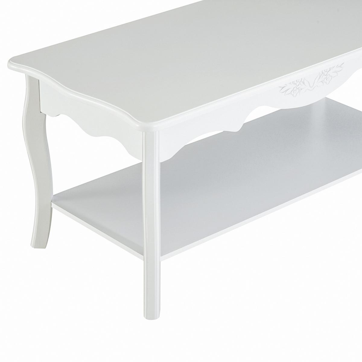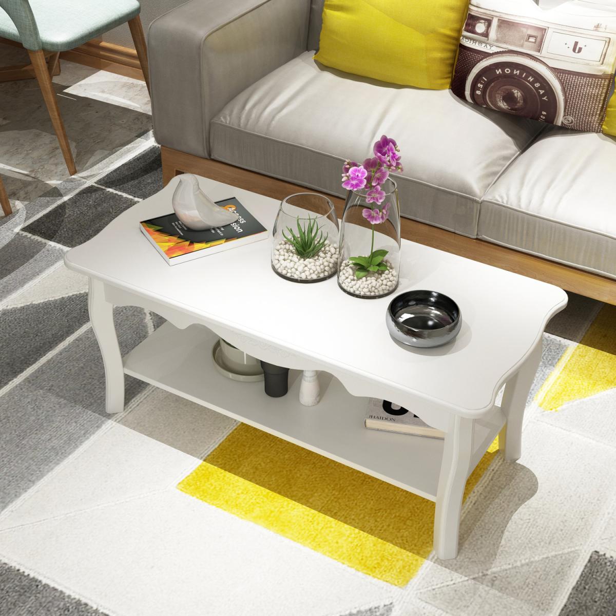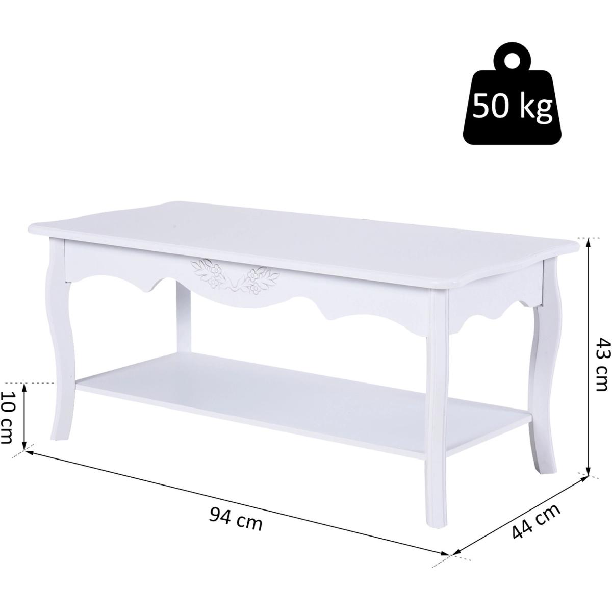 This HOMCOM Coffee table in white will be a great addition to your living space. Designed with a bottom shelf for extra storage for books and magazines. The contemporary styling offers a rectangular shape with curved legs, with the ability to be moved easily with its lightweight construction. It is easy to keep clean with low maintenance and will match room decor.