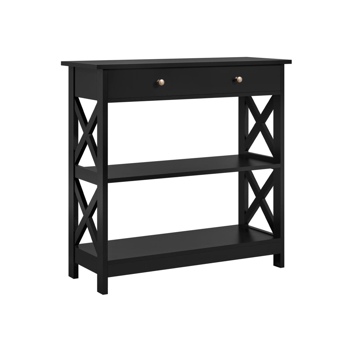 Wooden Console Table with 1 Drawer and 2 Open Shelves - Black / MDF