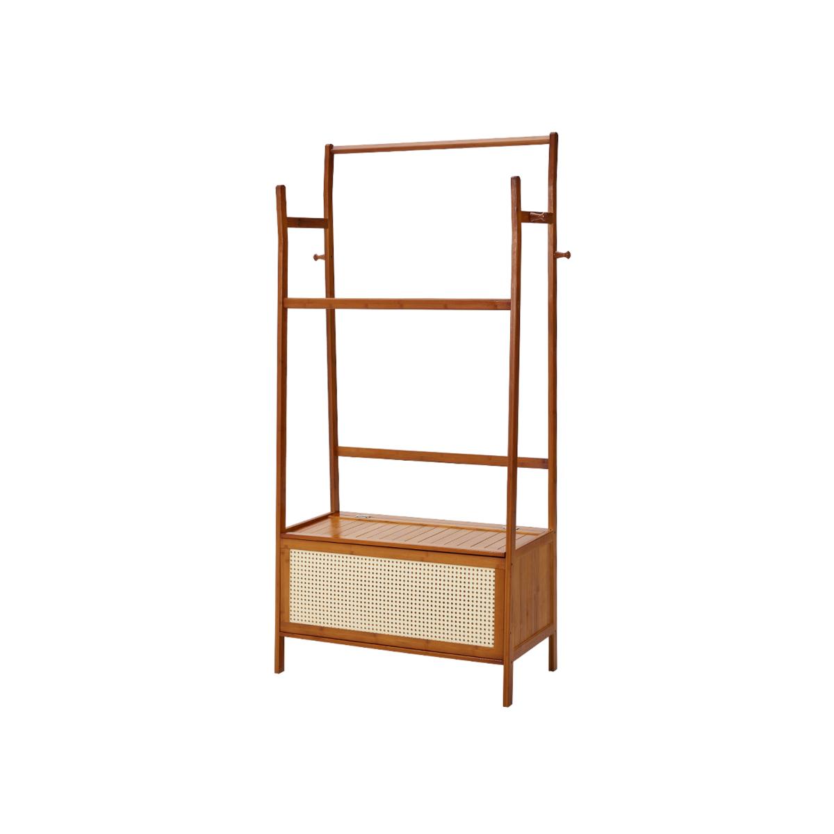 After a long day, a cluttered room can feel overwhelming. This clothes rack helps turn your space into a tidy and organised retreat. With its double tier design and two hanging rails at different heights, it neatly accommodates your garments. Four side hooks provide convenient storage for bags, hats and accessories. A lower cabinet keeps out of season clothing hidden away, while the space beneath is ideal for storing shoes.