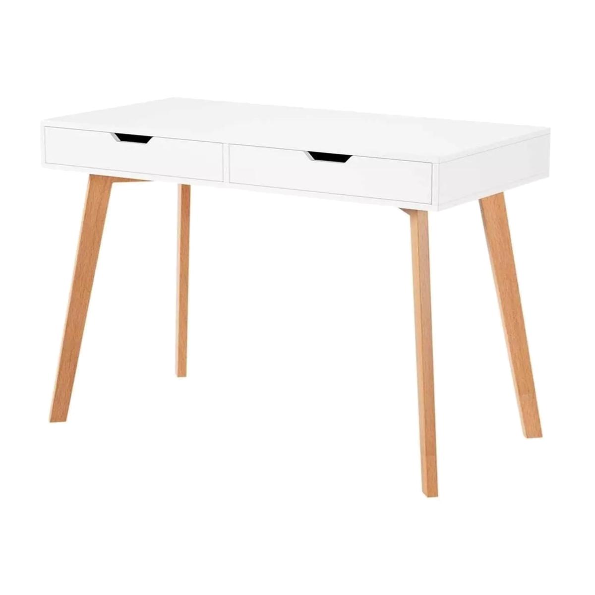Gr8 Home Wooden Rectangular Computer Desk Make Up Vanity Table Study Writing Desk Studio Home Office Bedroom With 2 Drawers White. Ivory white desk surface with natural colour legs, this computer desk can add a touch of vintage rustic appearance for your room. 2 drawers offer plenty of space to store your stationary, files and makeup collections. Thanks to the smooth surface, the table is easy to clean with soft cloth. Laptop, computer, books or mirrors and other items can find enough space on the table. The table is of good quality because of the great workmanship and the MDF materials. A wonderful piece of furniture for your study, bedroom, living room and office to take care of your needs. Material: Wood, Colour:Ivory white & Natural colour, Shape: Rectangular, Assembly: Needed, Dimensions:Desk size: 39.4L*19.7W*30.3. H inches (100*50*77cm), Drawer size: 19L*18.7W*3.5. H inches (48.3*47.5*8.8cm).