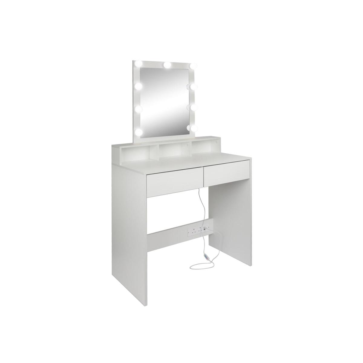 This Wooden Dressing Table from Harbour Housewares will provide the perfect personal preparation and self-care sanctuary within any bedroom, with a variety of handy features dedicated to making your morning or evening routine as fuss-free as possible. With its clean and compact silhouette, this table will slot in perfectly to even the smallest of spaces its crisp white finish adding a touch of contemporary style and elegance to any decor. The 40 x 50cm mirror offers excellent visibility when doing hair and makeup, and comes framed with 9 LED bulbs that can be adjusted to a range of warmth and brightness settings to give you the perfect lighting, every time. Two large drawers provide handy storage for hairdryers, straighteners and other tools that can be conveniently powered from the built-in plug sockets, while a set of three compartments on the tabletop let you keep your lipsticks, varnishes and other essentials organised and tidy.