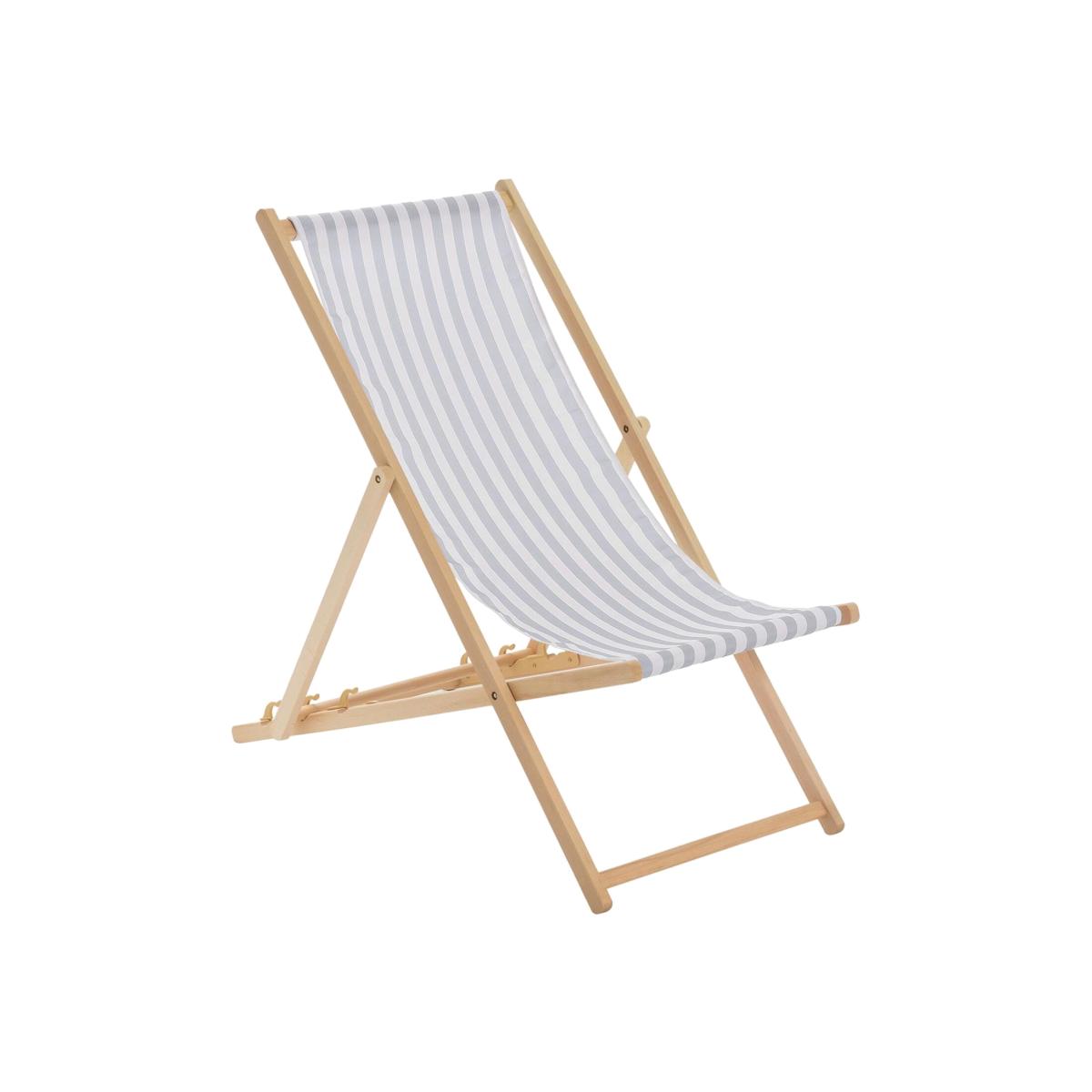 Wooden Folding Garden Sun Lounger Deck Chair x1 - Light Grey Stripe