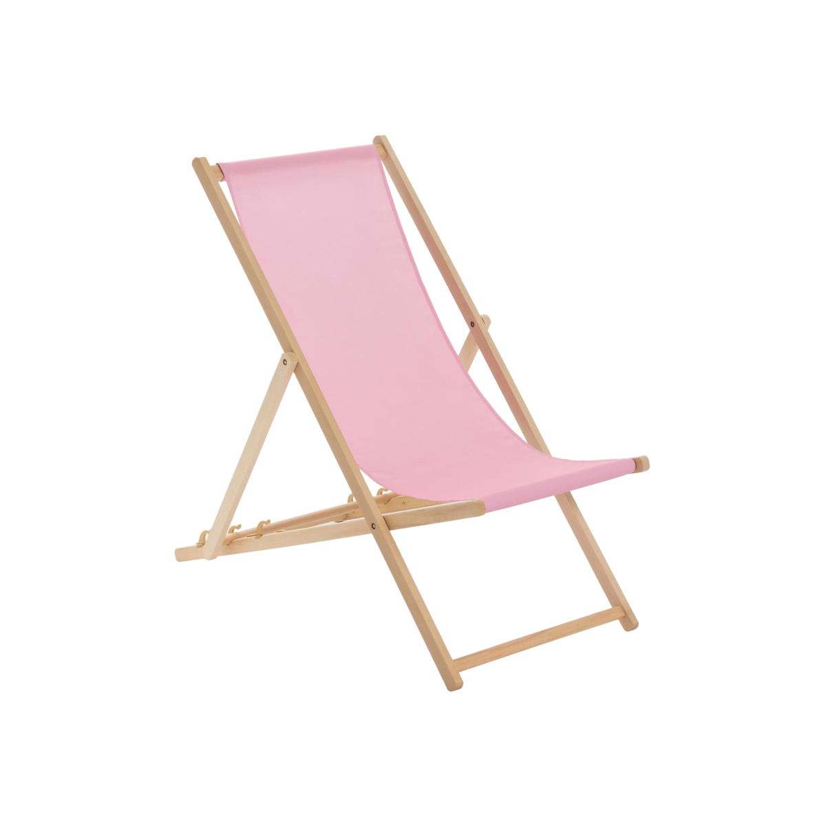 Wooden Folding Garden Sun Lounger Deck Chair x1 - Light Pink