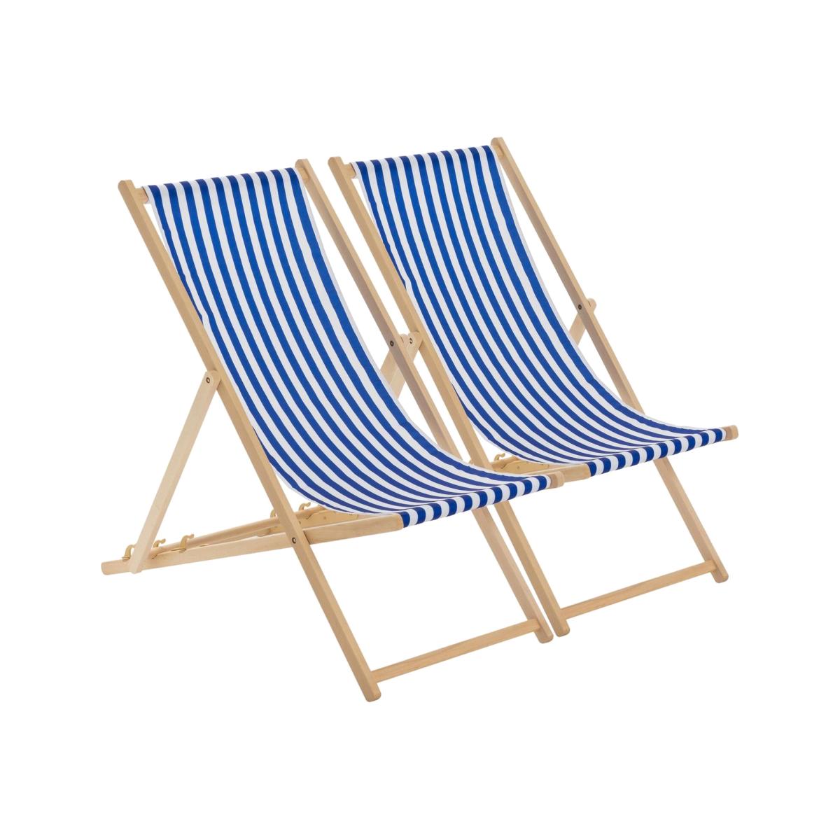 Wooden Folding Garden Sun Lounger Deck Chair x2 - Blue