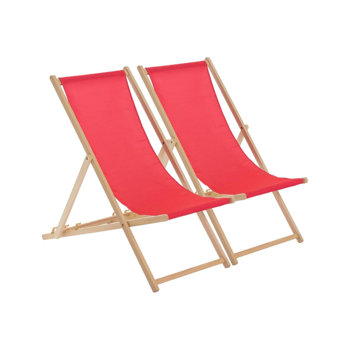 Wooden Folding Garden Sun Lounger Deck Chair x2 - Pink