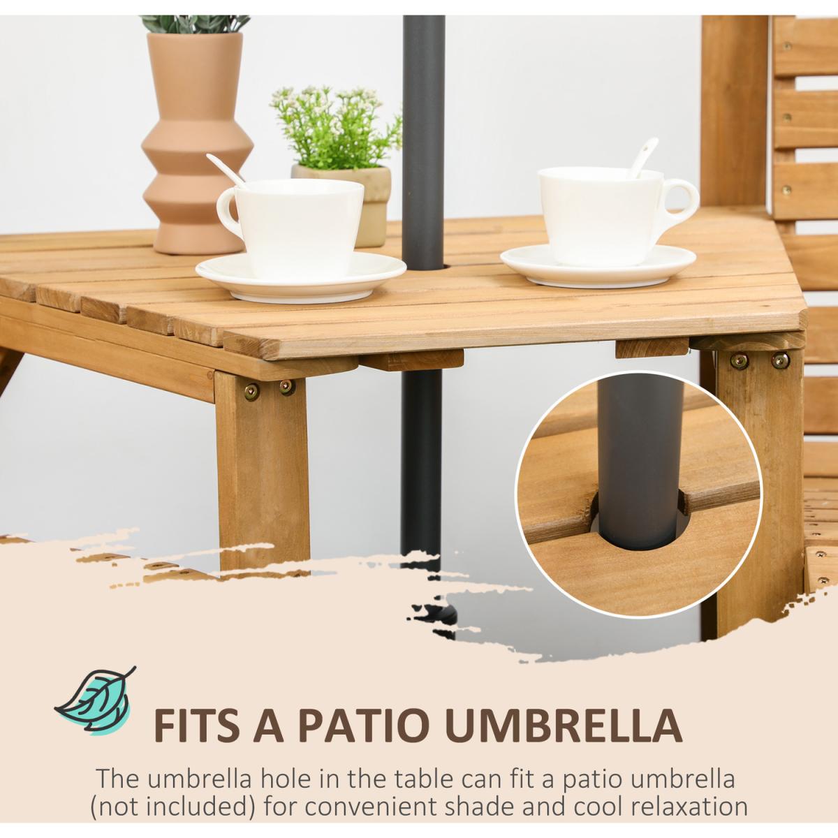 Wooden Garden Love Seat 2 Seater Companion Seat Table Umbrella Hole - Brown